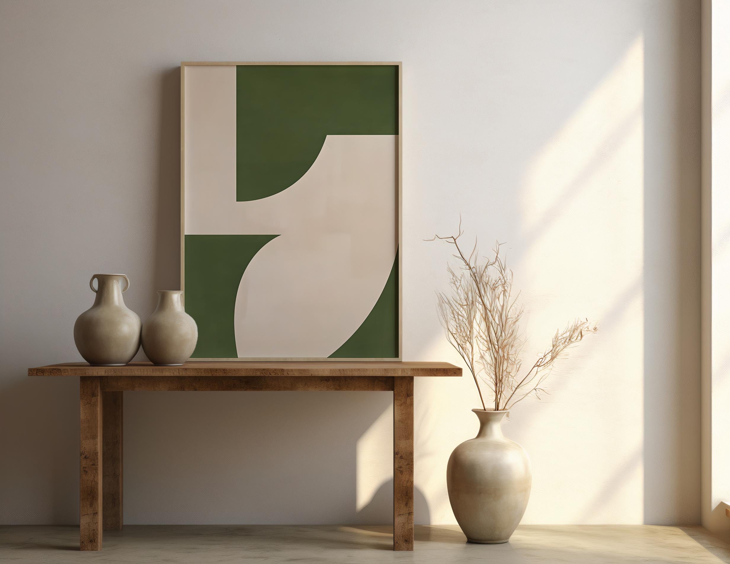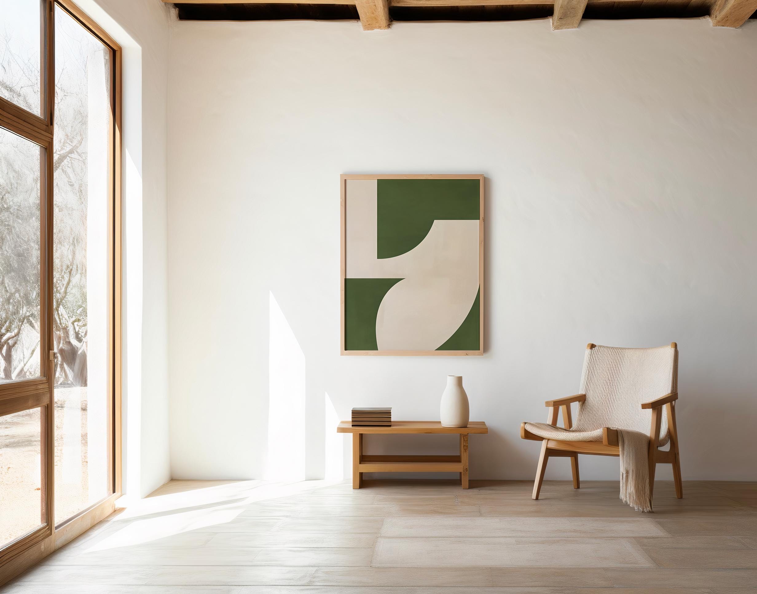 Bring depth and balance to your space with this sage green abstract wall art, featuring bold sculptural forms layered against a muted green backdrop. A refined statement piece designed for Japandi, modern, and minimalist interiors.