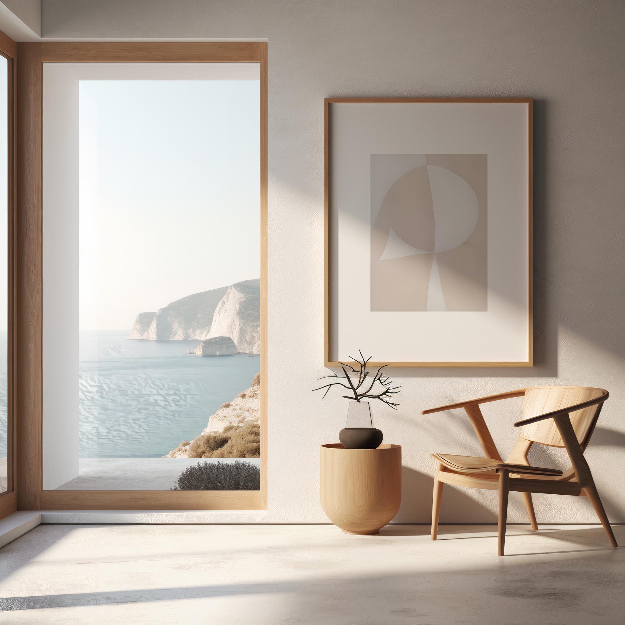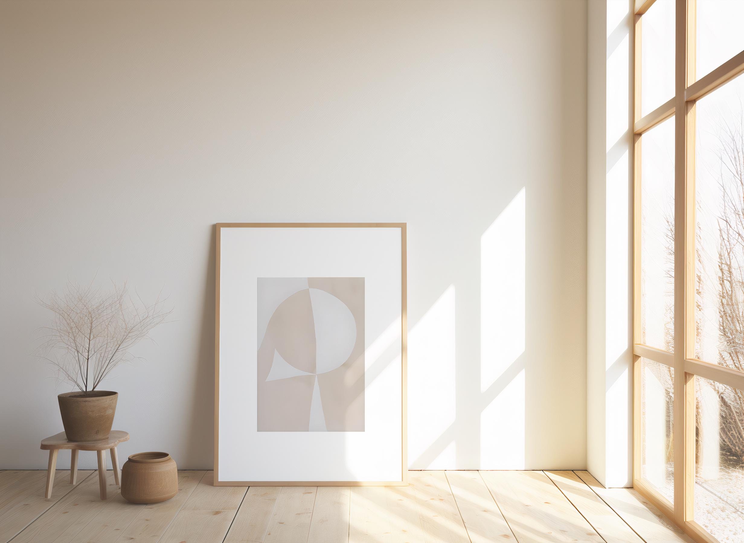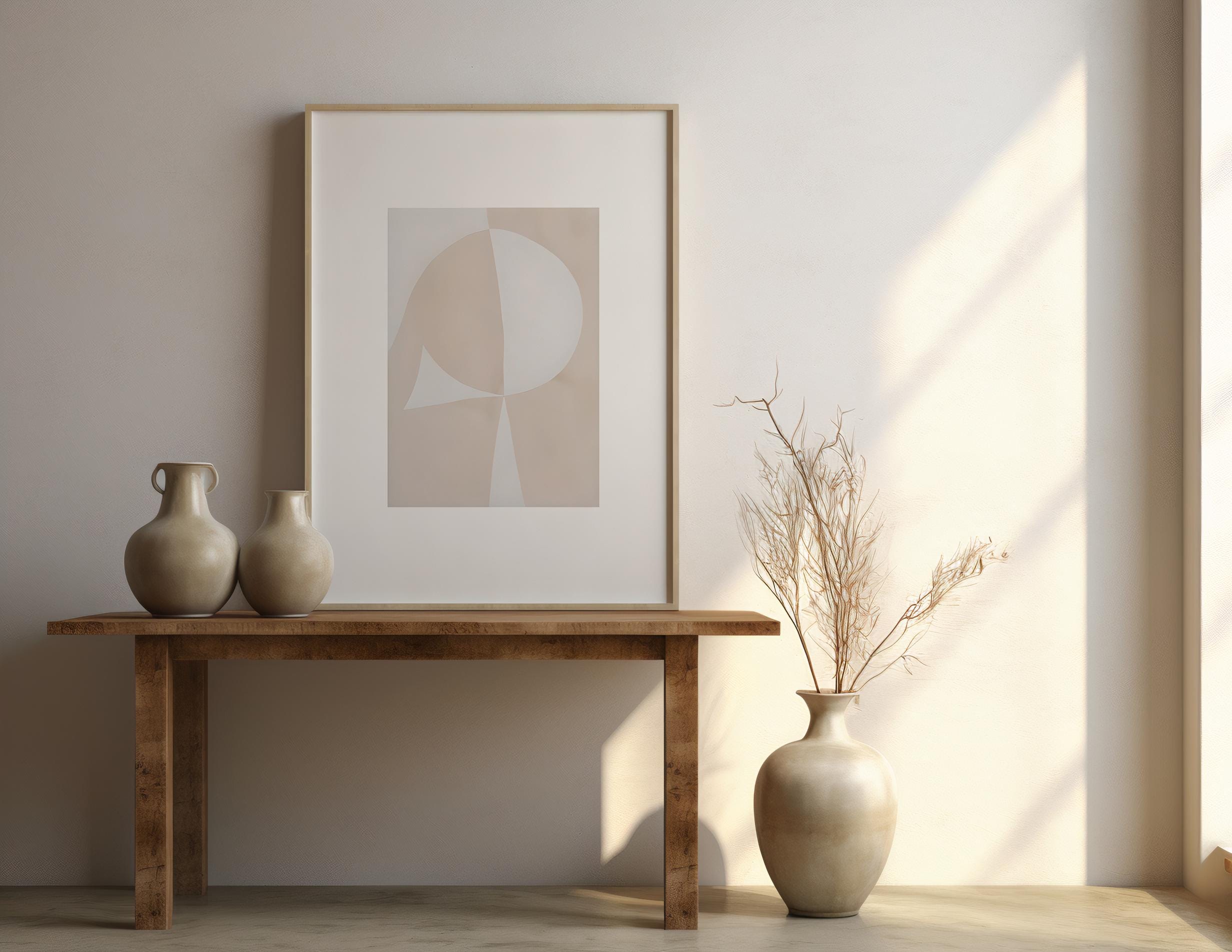 Soft shapes and warm neutral tones come together in this minimalist abstract geometric artwork, designed to bring calm balance and modern simplicity into your space. Featuring layered beige forms and subtle curves, this piece works beautifully in organic modern, Japandi, and contemporary interiors.