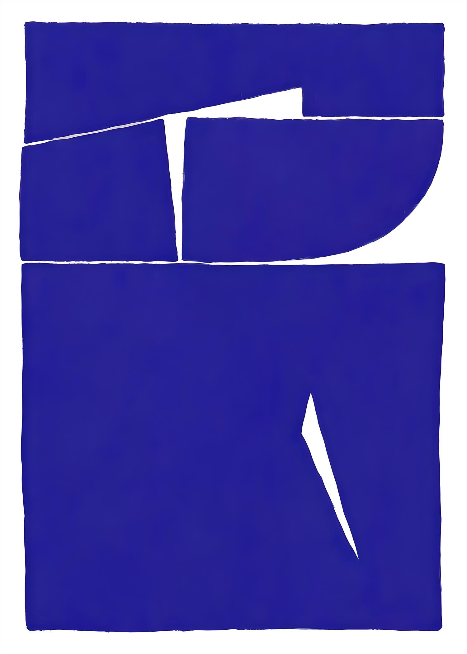 Bring bold contrast and modern simplicity into your space with this striking cobalt blue abstract artwork. Featuring clean geometric shapes and organic cutout forms, this piece makes a powerful statement while still feeling minimal and refined — perfect for contemporary, modern, and artistic interiors.