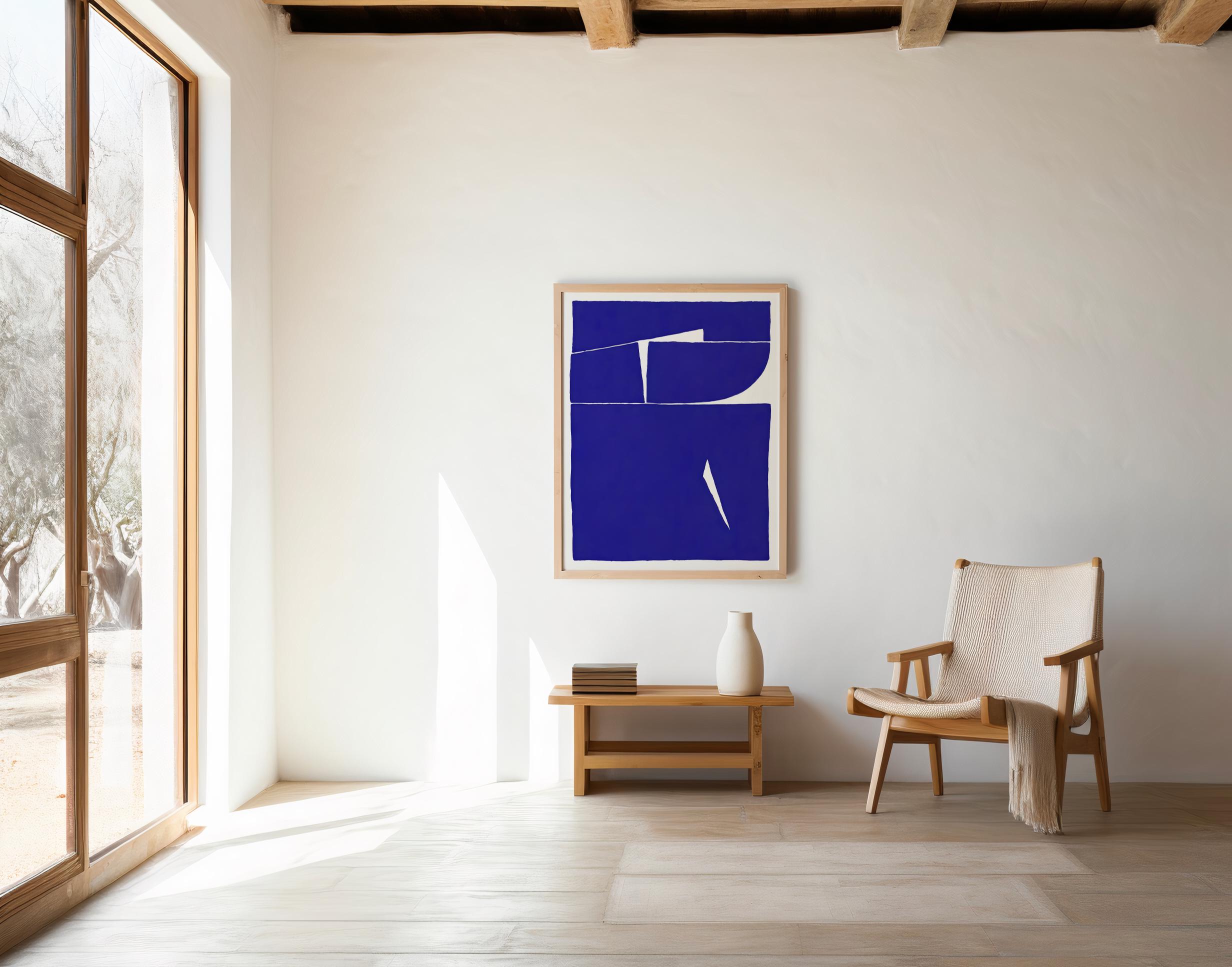 Make a bold yet refined statement with this modern blue abstract artwork, featuring strong geometric forms and organic cutout lines in a rich cobalt tone. Designed to elevate contemporary, minimalist, and modern interiors — perfect for living rooms, bedrooms, or creative spaces that need impactful color.
