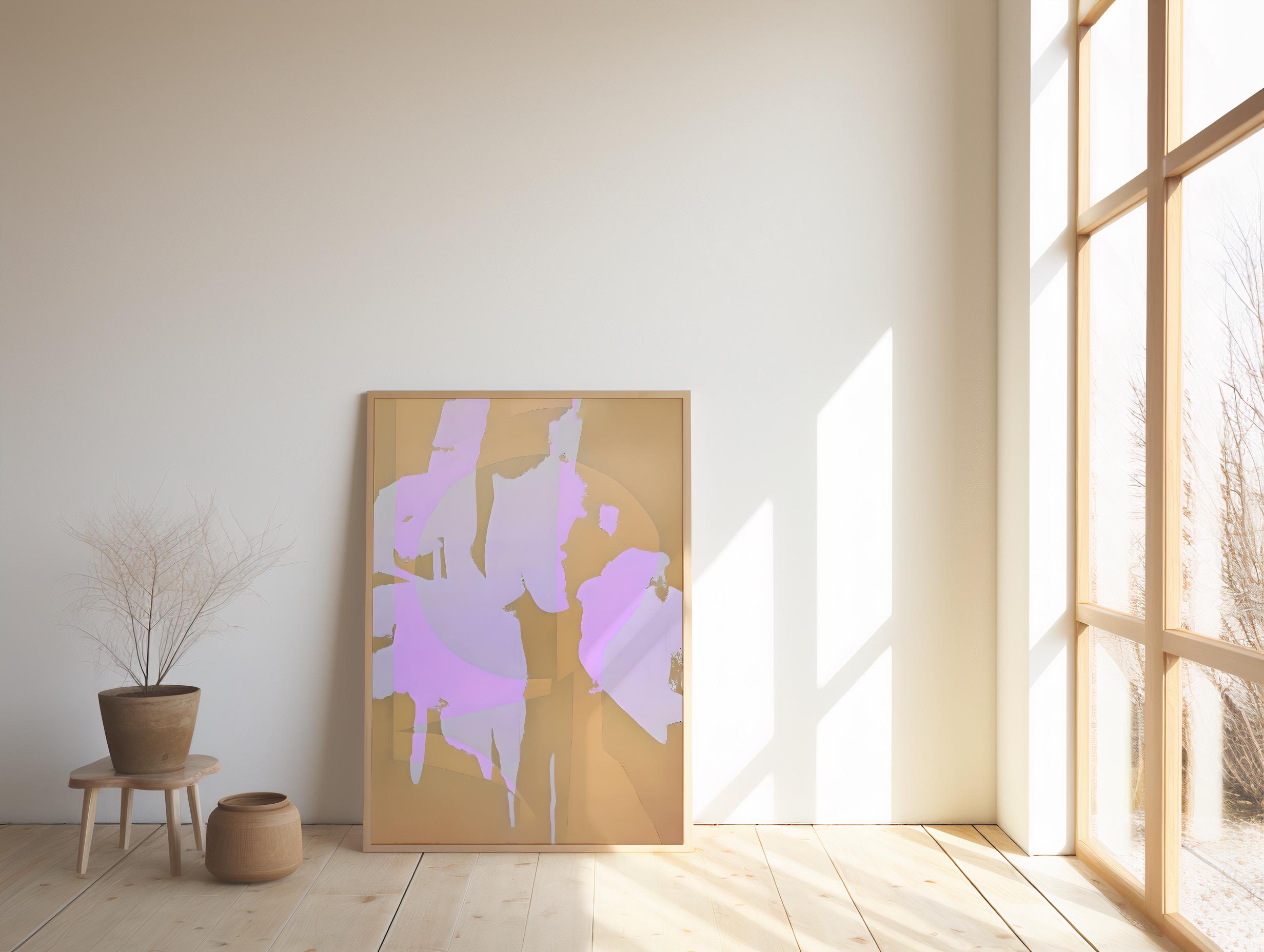 Bring soft warmth and modern elegance into your space with this layered abstract composition in lavender blush, muted sand, and warm neutral tones. Organic shapes and subtle geometric movement create a calming, elevated aesthetic — perfect for Japandi, organic modern, and minimalist interiors.