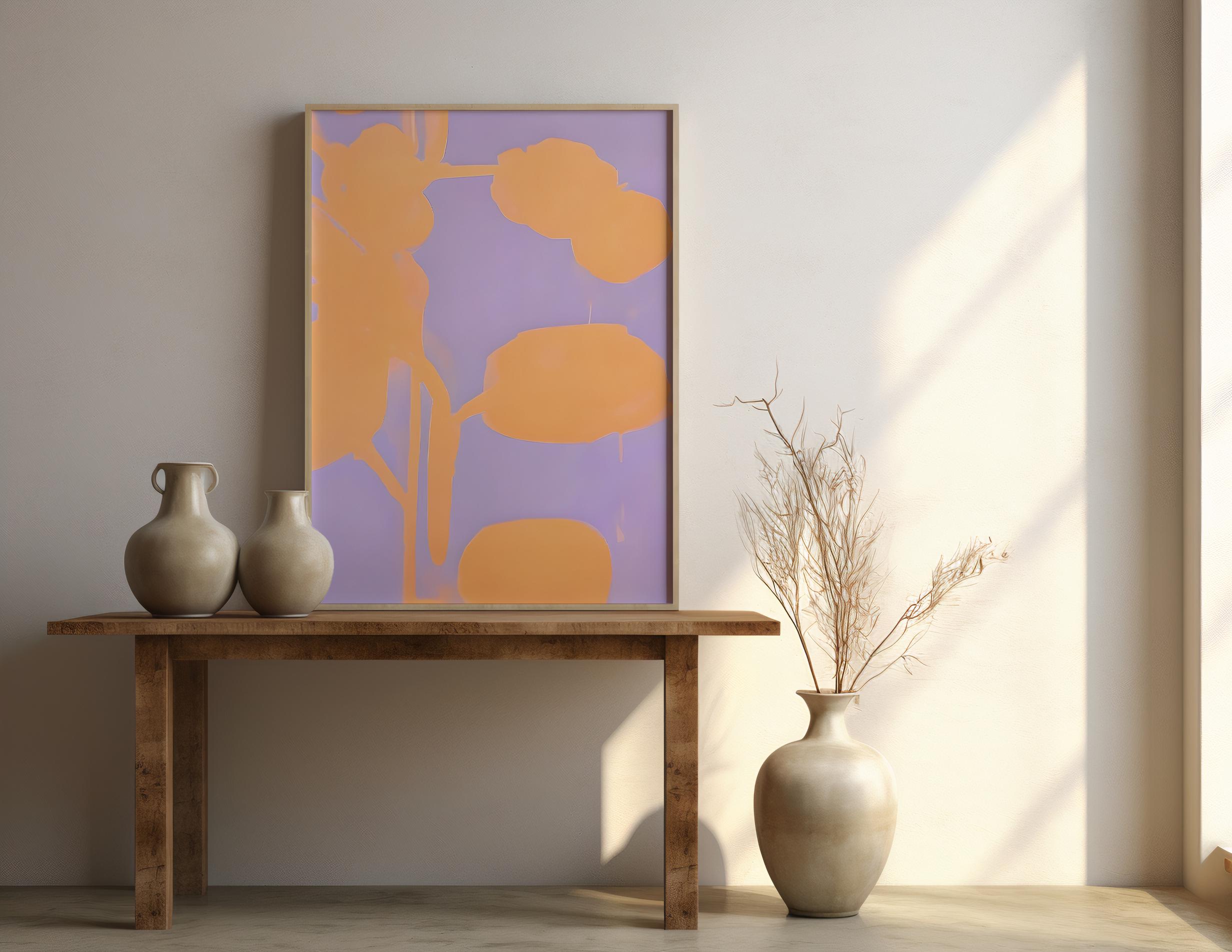 Bring soft warmth and modern balance into your space with this peach and lavender abstract artwork. Layered organic shapes and gentle contrast create a calm, elevated look — perfect for Japandi, organic modern, and minimalist interiors.