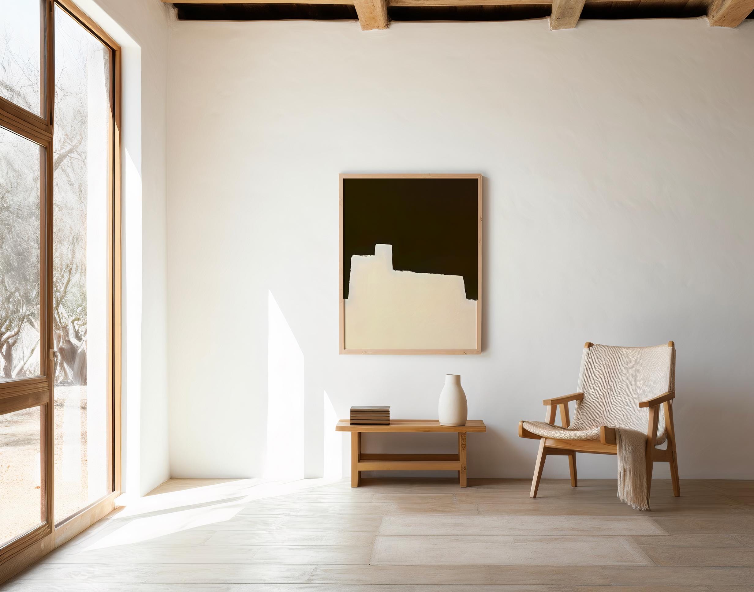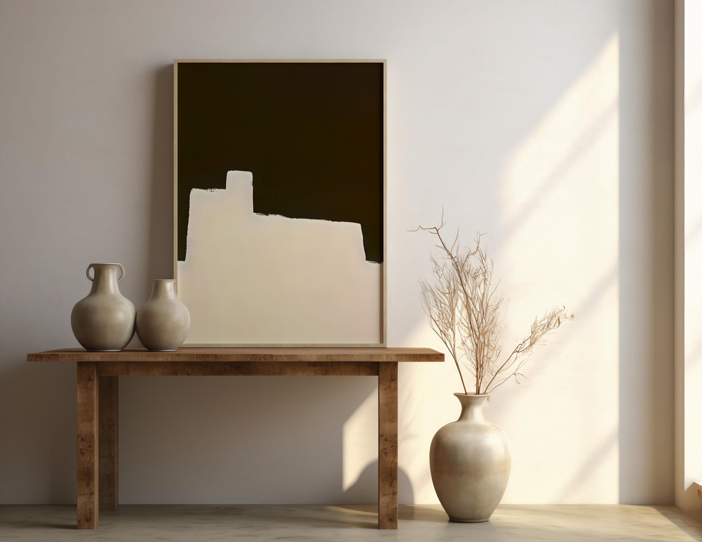 Elevate your space with this dark mocha and warm cream minimalist abstract artwork. Featuring bold geometric silhouettes and soft textured edges, this piece balances depth and warmth — perfect for modern, organic, and neutral interiors.