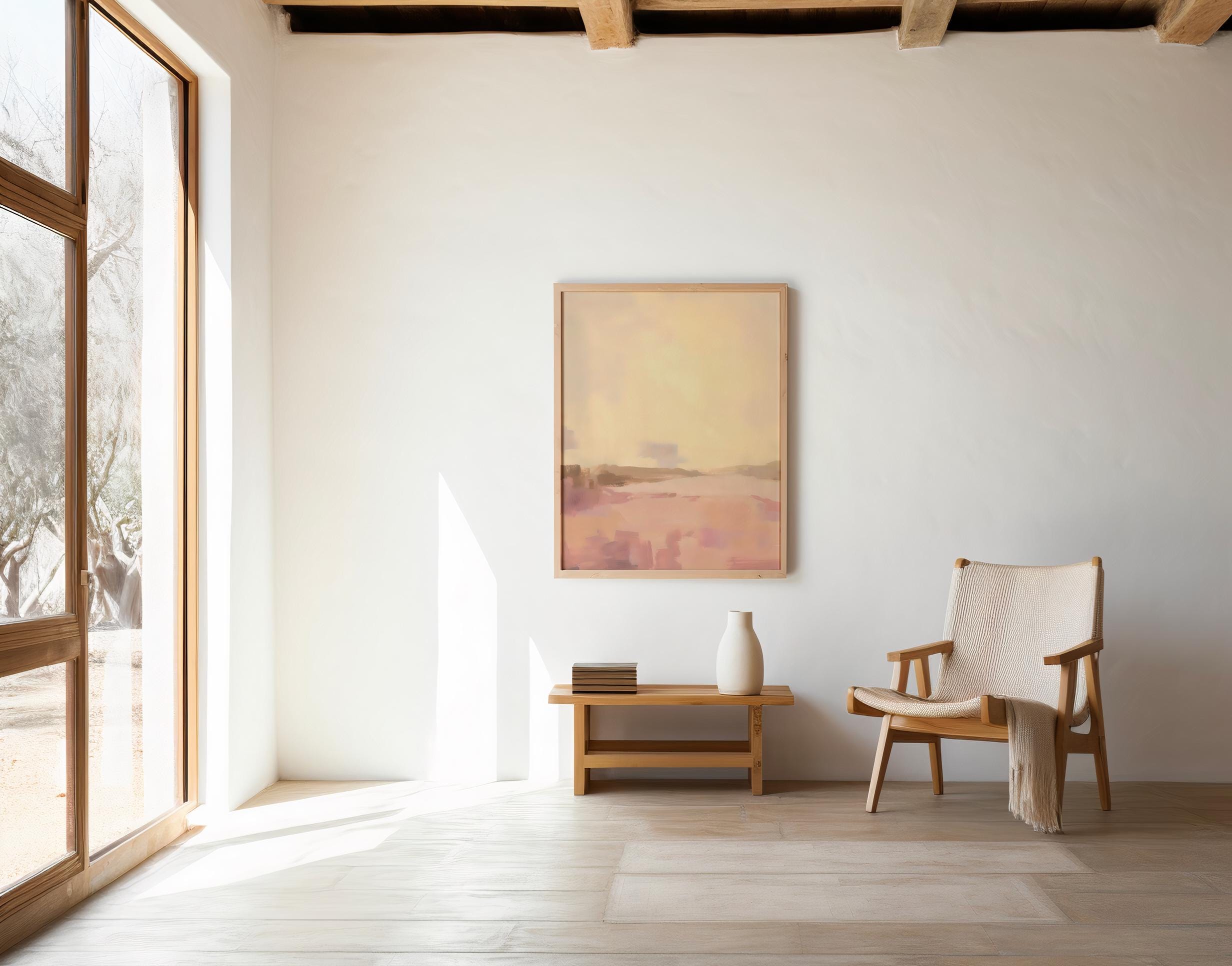 This blush desert landscape printable captures the quiet beauty of a sun-washed horizon in layered pinks, warm beige, and subtle earth tones. Designed for modern interiors, this minimalist abstract artwork adds softness without overpowering your space.