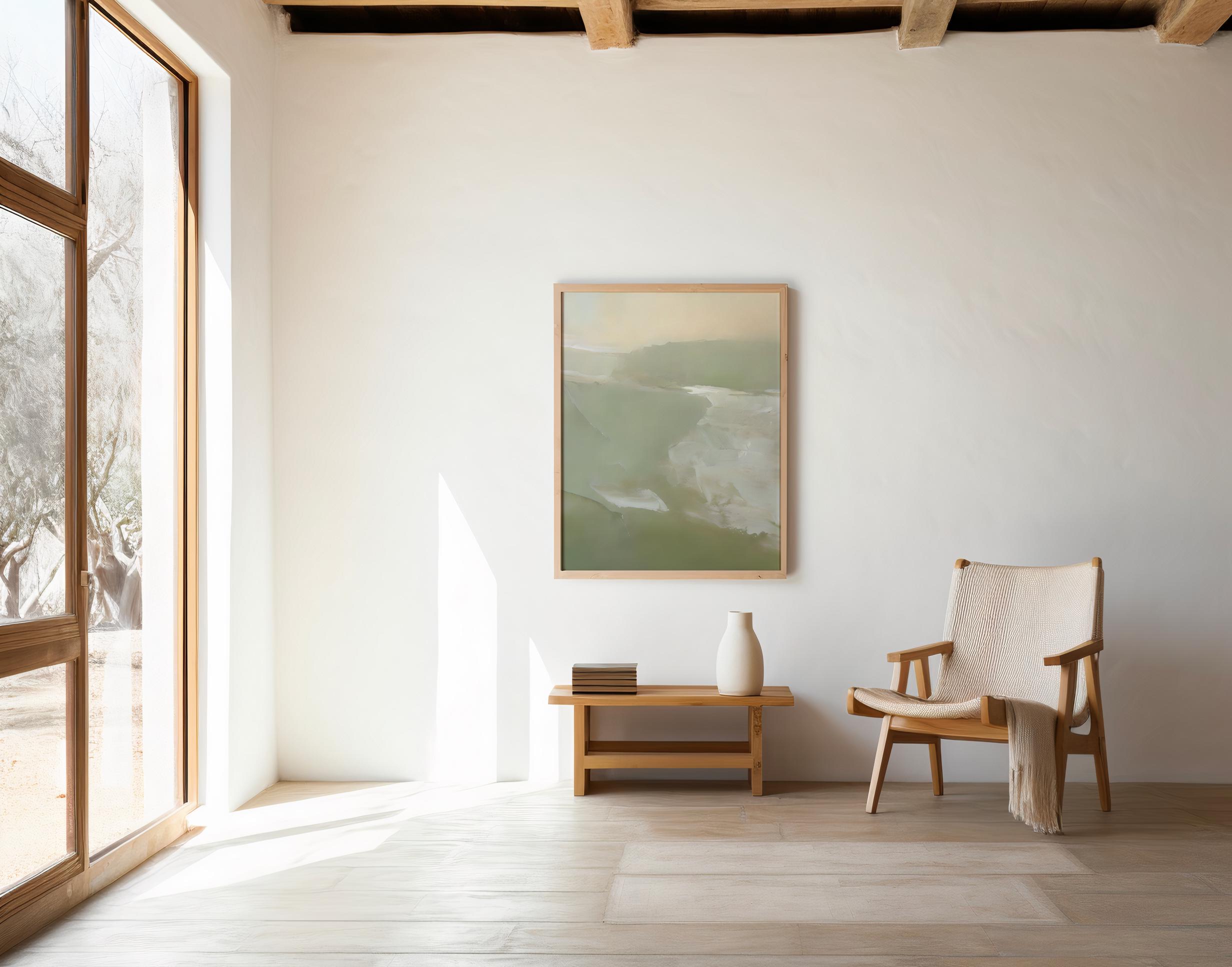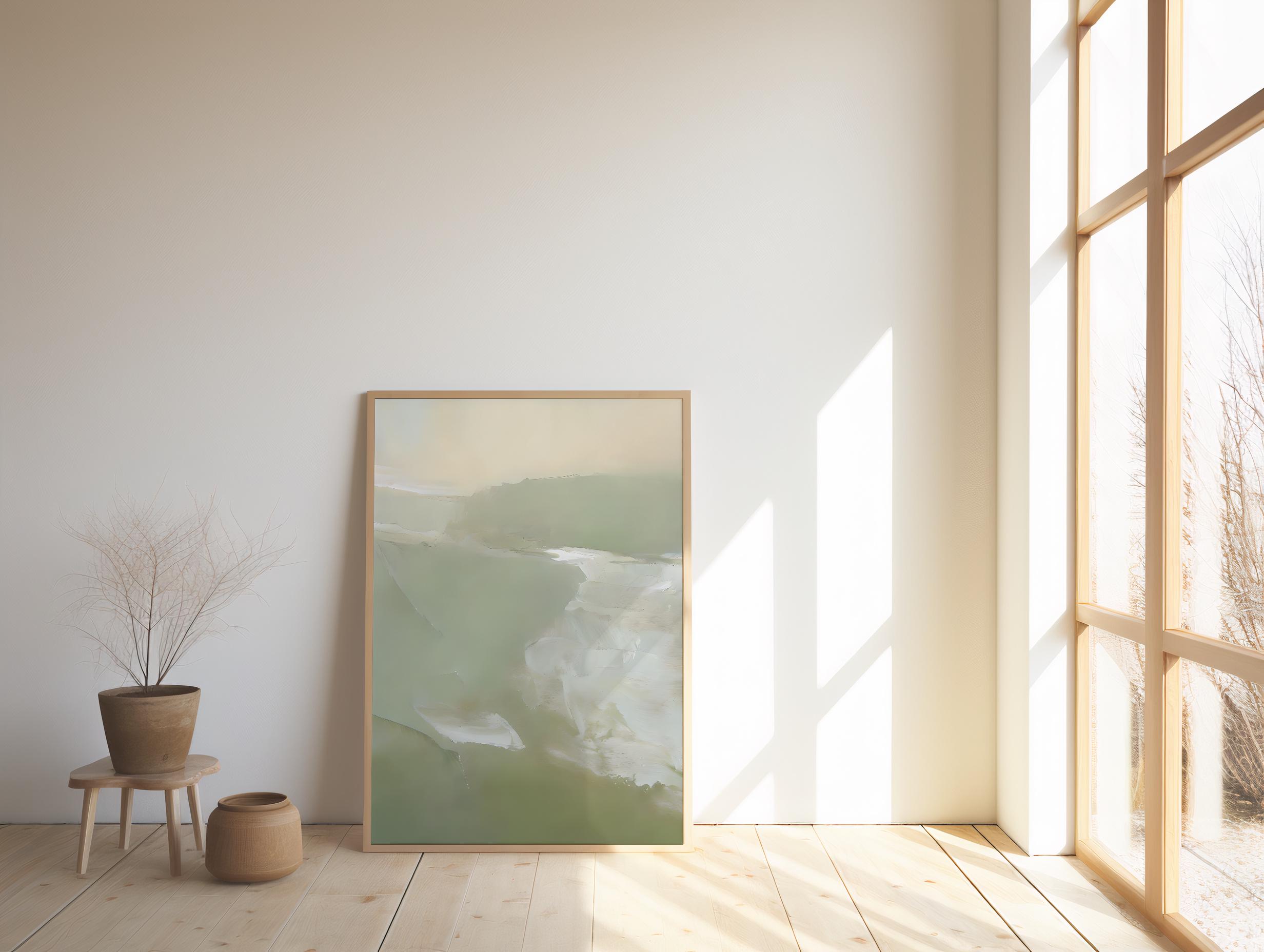 Sage Green Abstract Wall Art | Soft Neutral Minimal | Framed Poster