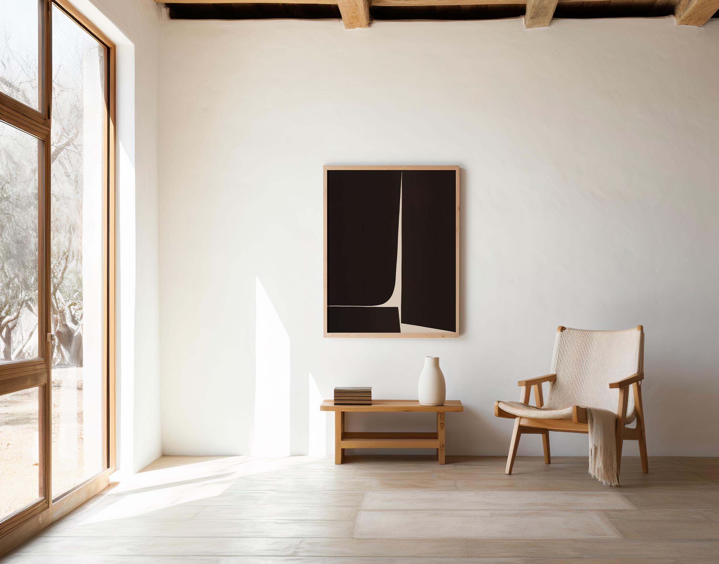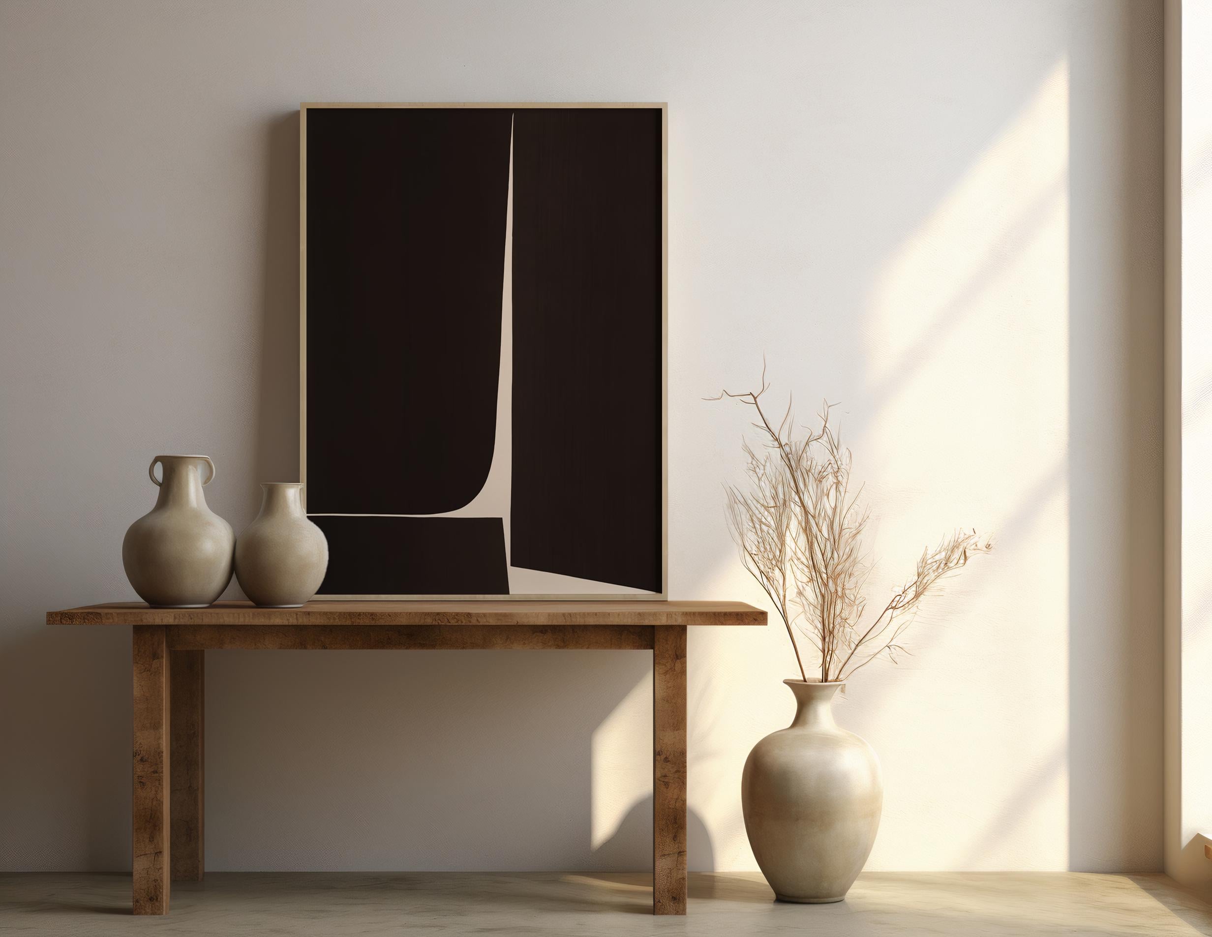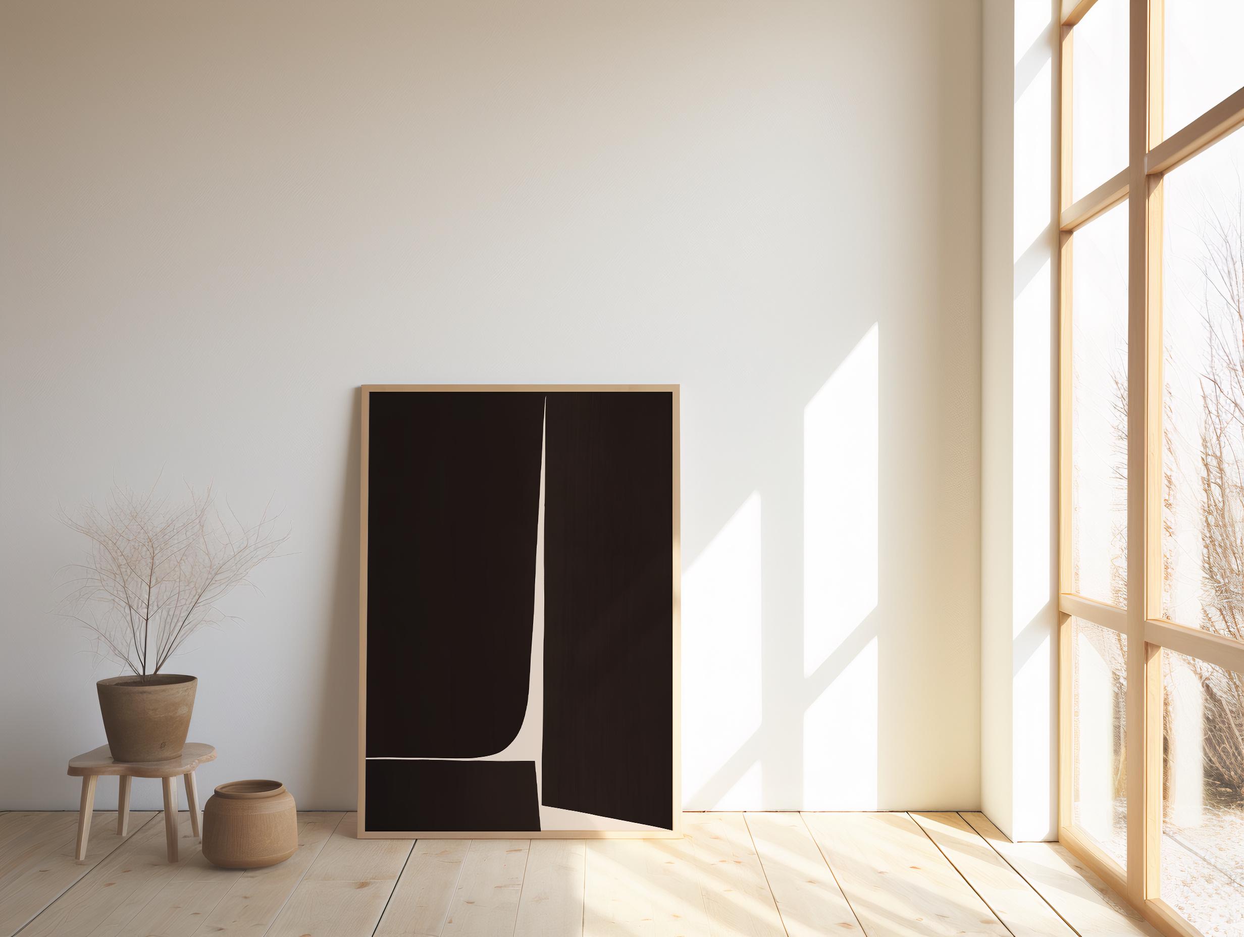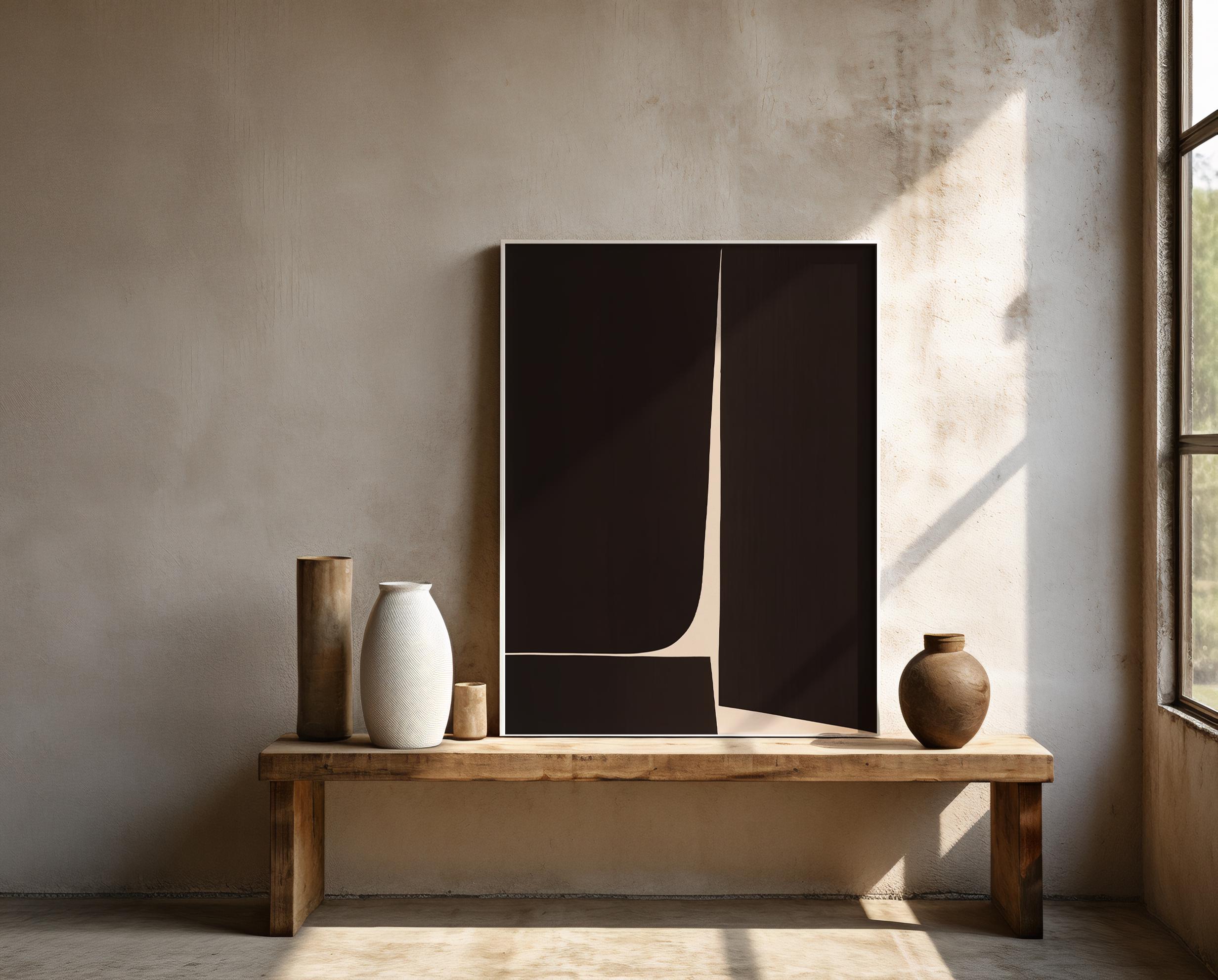 This dark brown abstract wall art features rich chocolate tones contrasted with soft warm ivory, creating a grounded and architectural composition. The sculptural negative space and gentle curvature add depth and movement while maintaining a refined minimalist aesthetic.