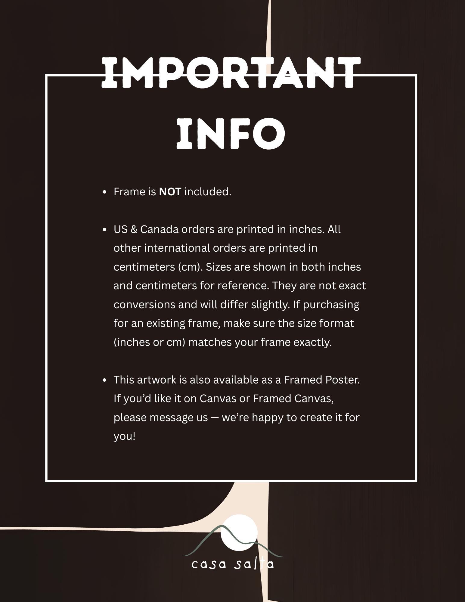 If you’d like this artwork on Canvas or Framed Canvas and don’t see it listed, please message us — we’re happy to create it for you.