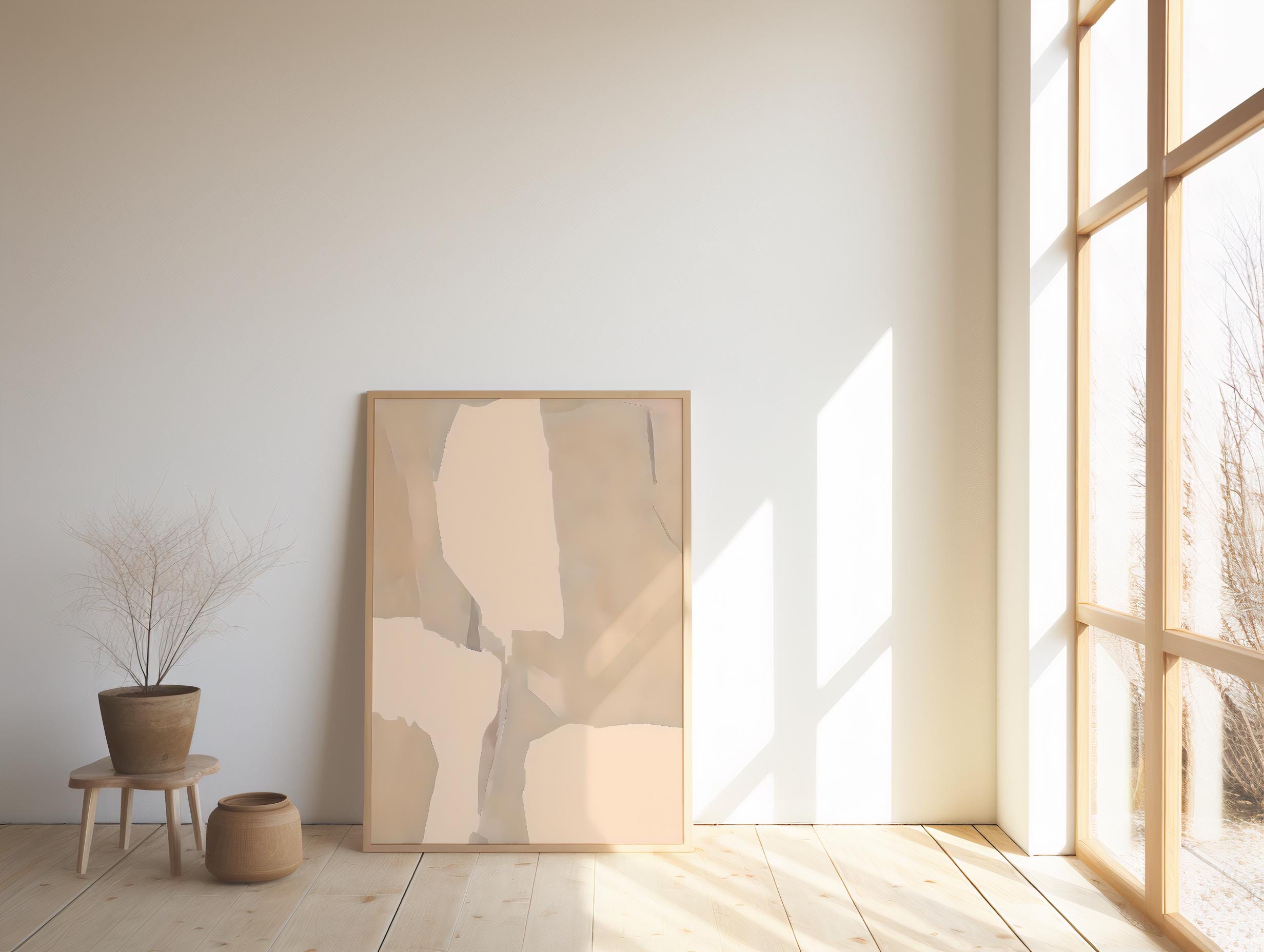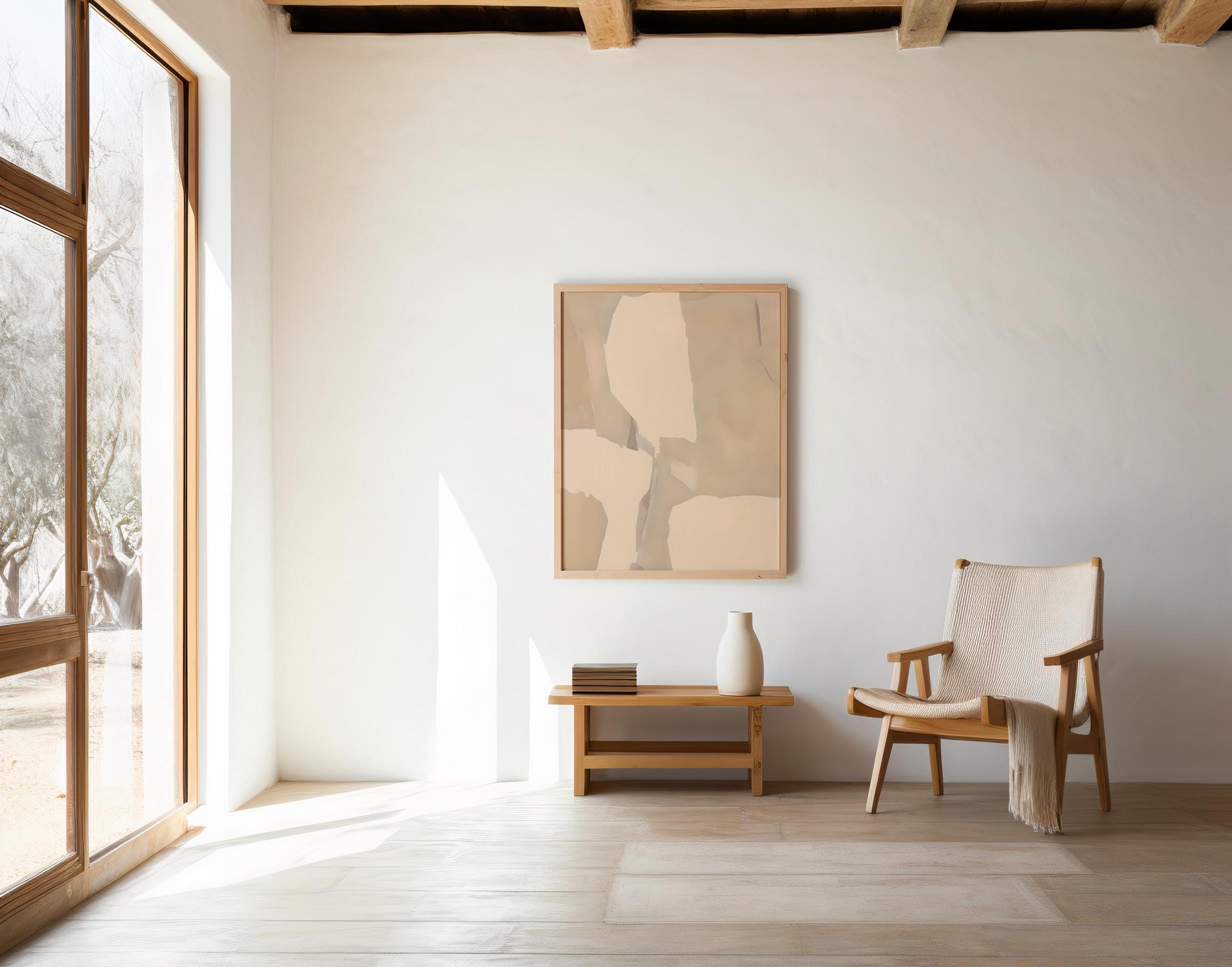 Neutral Abstract Wall Art | Minimalist Beige Modern Decor | Framed Poster