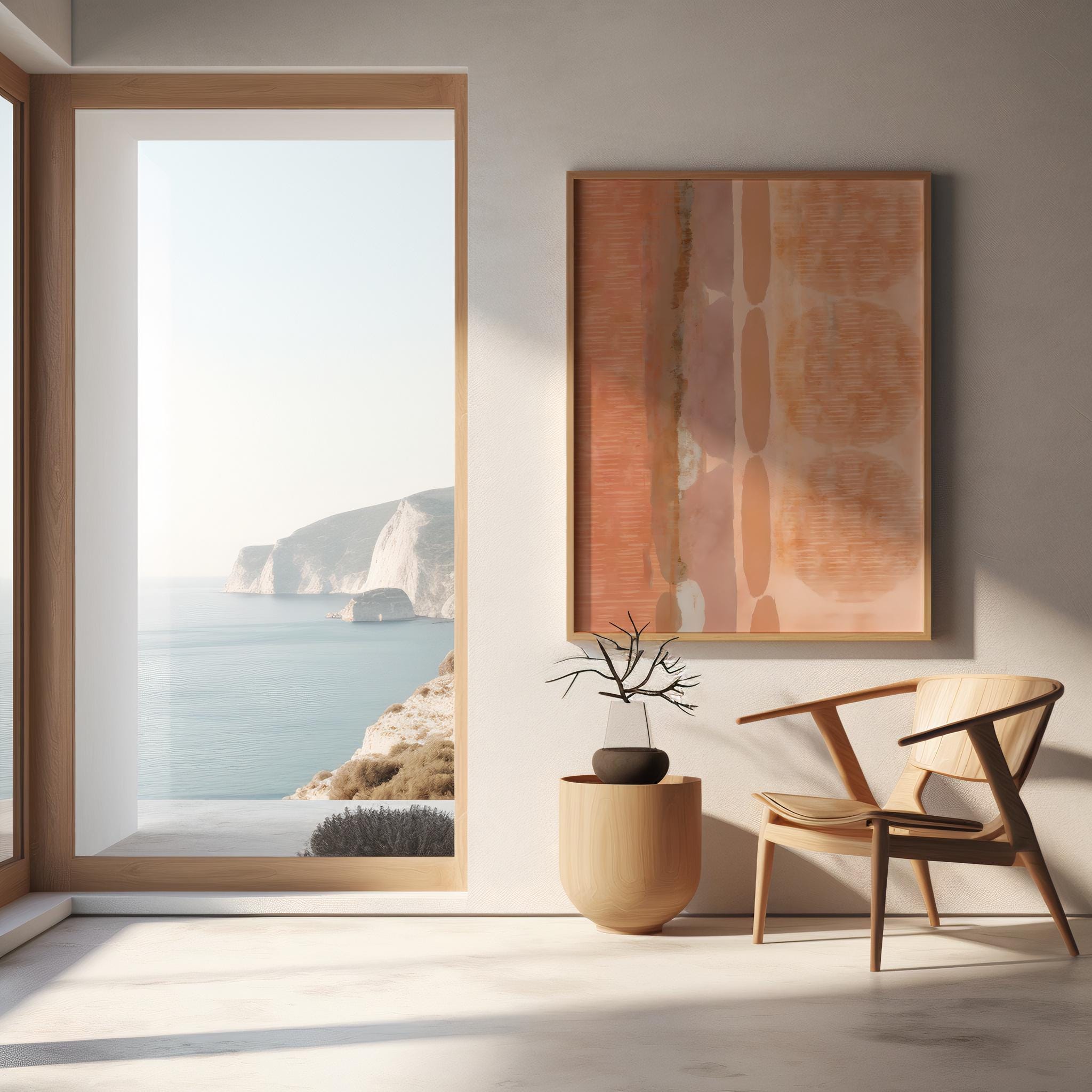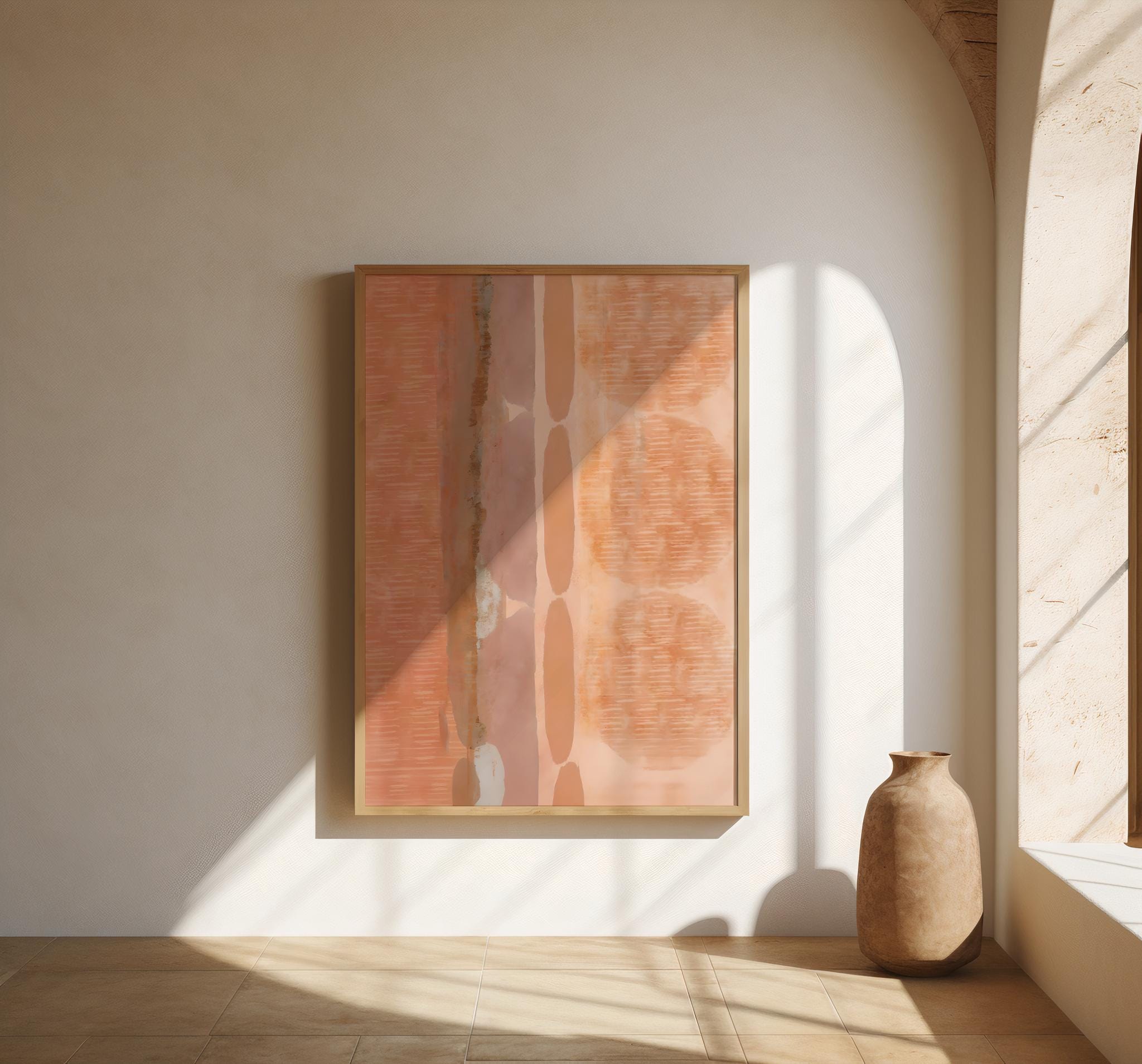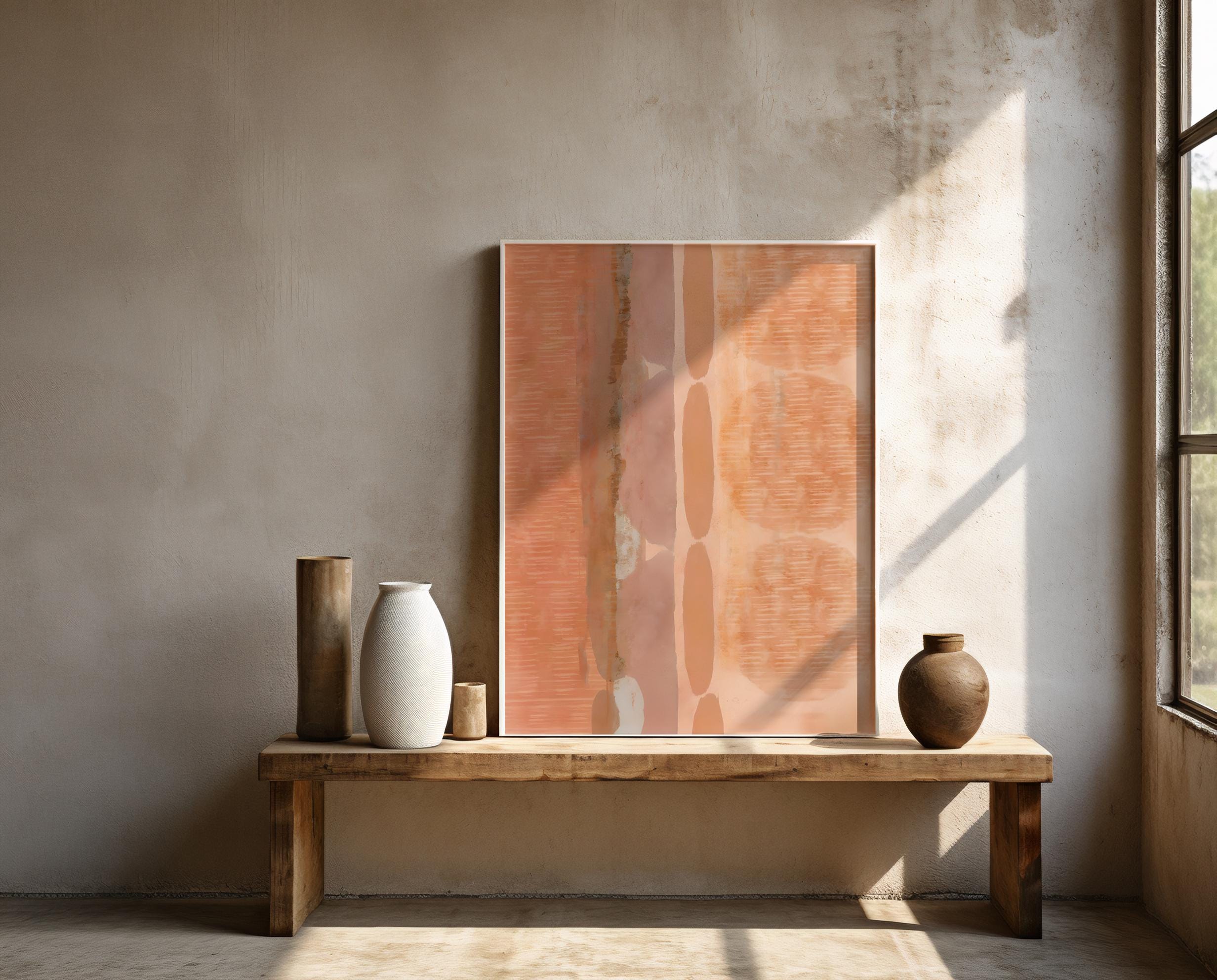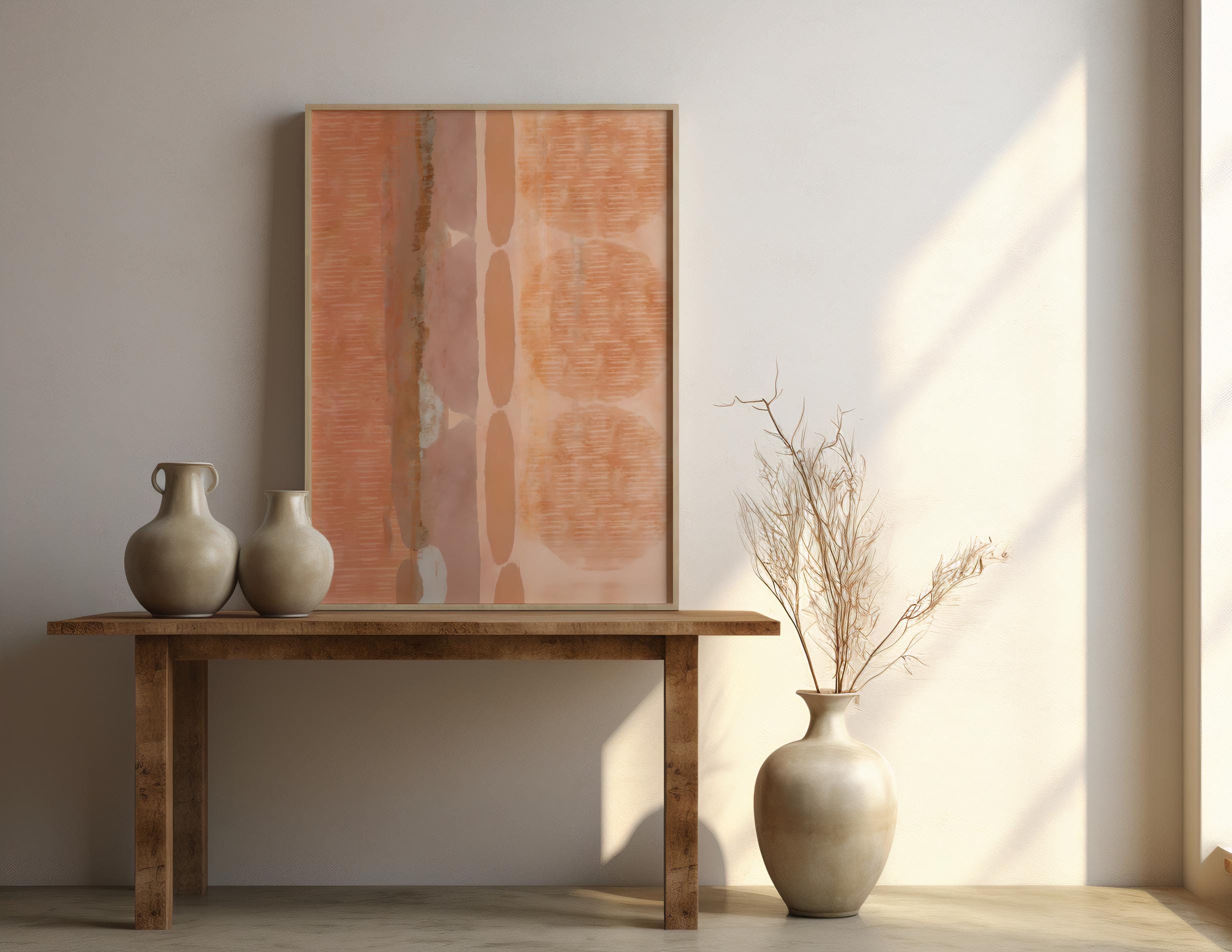 Instant digital download. The balanced arrangement of warm neutrals and soft terracotta-inspired hues gives the piece a contemporary architectural feel while still remaining warm and inviting. Its earthy palette makes it ideal for modern interiors, Scandinavian spaces, and neutral gallery walls.