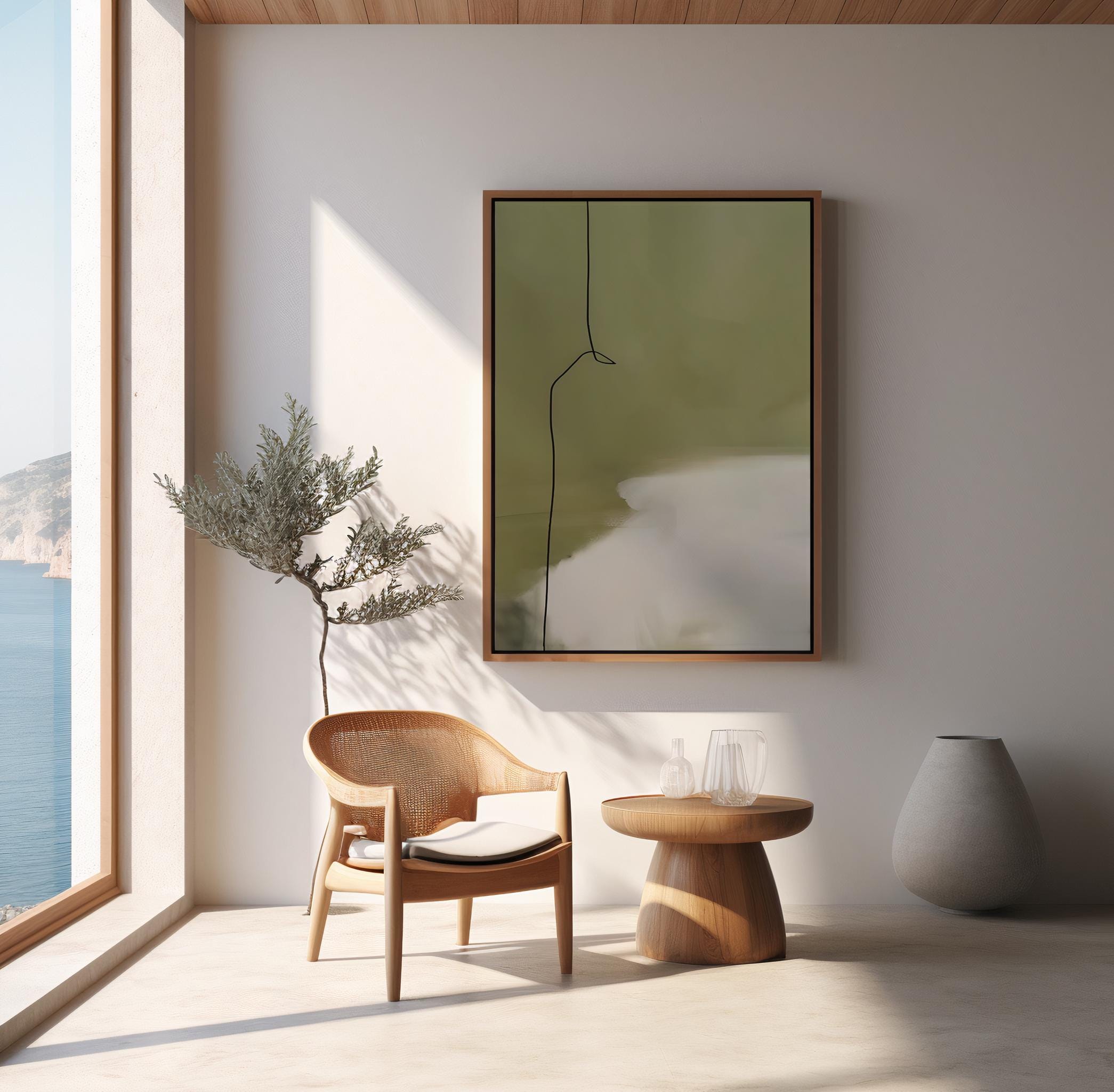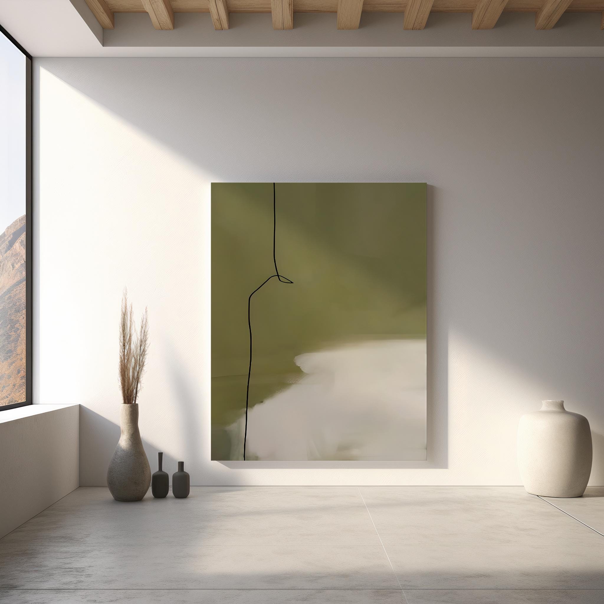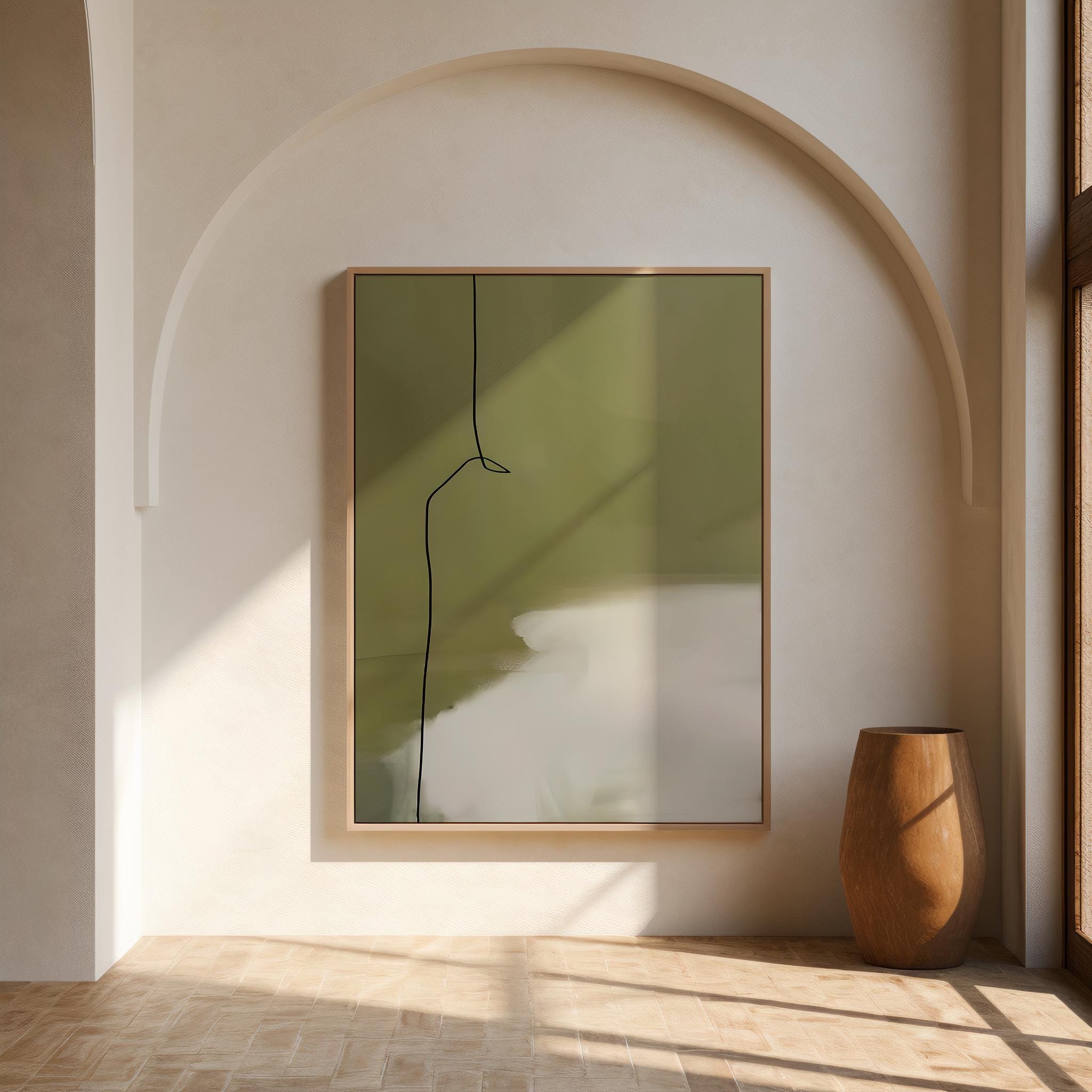 The muted green palette brings a natural, grounding atmosphere to a space, while the clean line art introduces a contemporary artistic touch. This piece works beautifully in living rooms, bedrooms, offices, or gallery walls where modern design and natural tones create a relaxed, sophisticated interior.