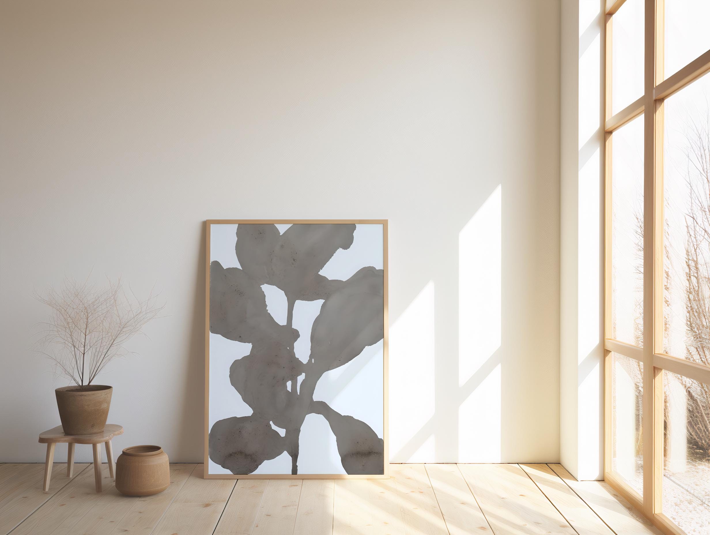 Grey Blue Abstract Floral Wall Art – Digital Download