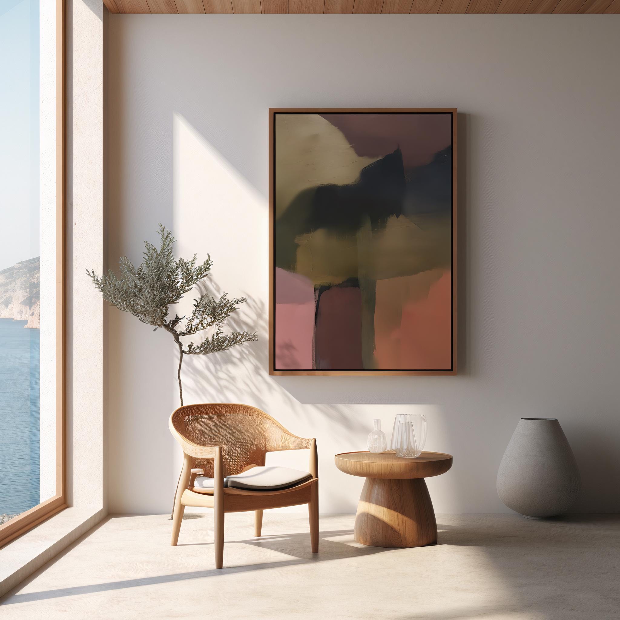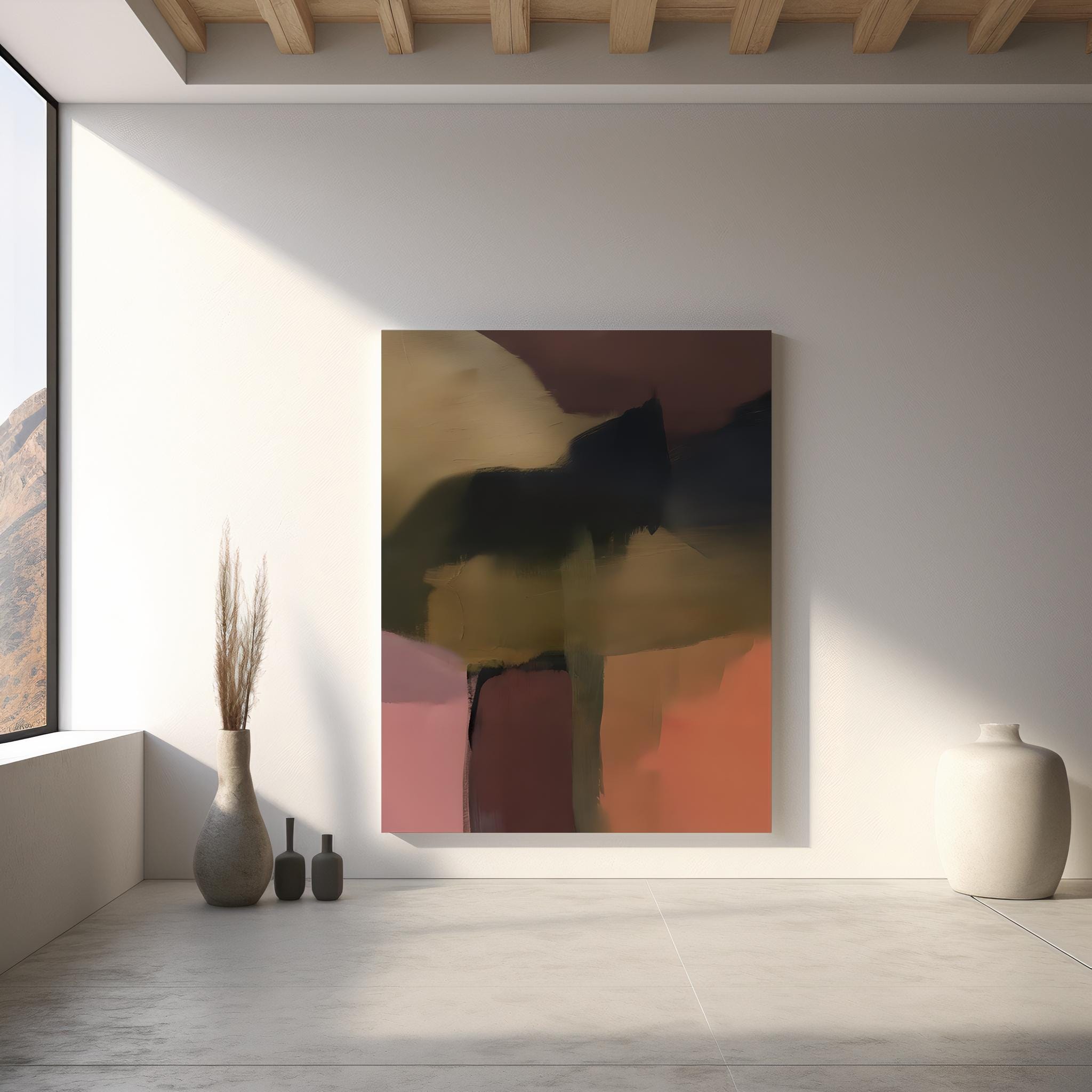 The rich earthy palette adds depth and visual balance while maintaining a refined minimalist aesthetic. This piece works beautifully in living rooms, bedrooms, offices, or gallery walls where modern abstract artwork creates a sophisticated focal point.