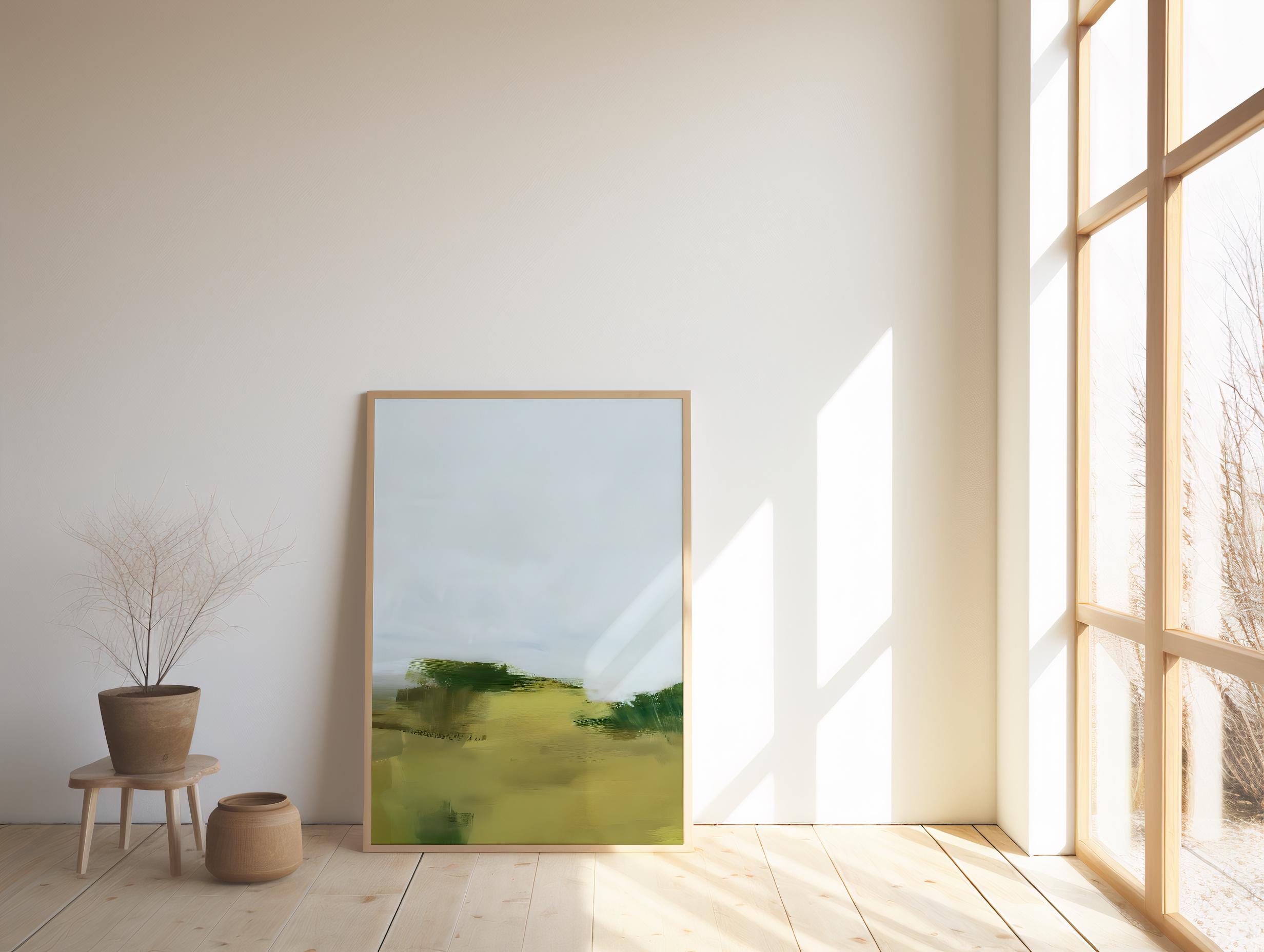 Sage Green Abstract Wall Art Printable – Minimalist Landscape Art – Digital Download