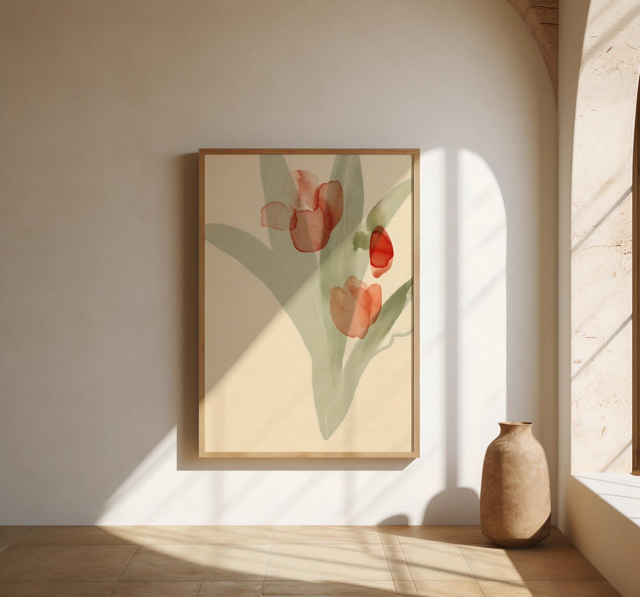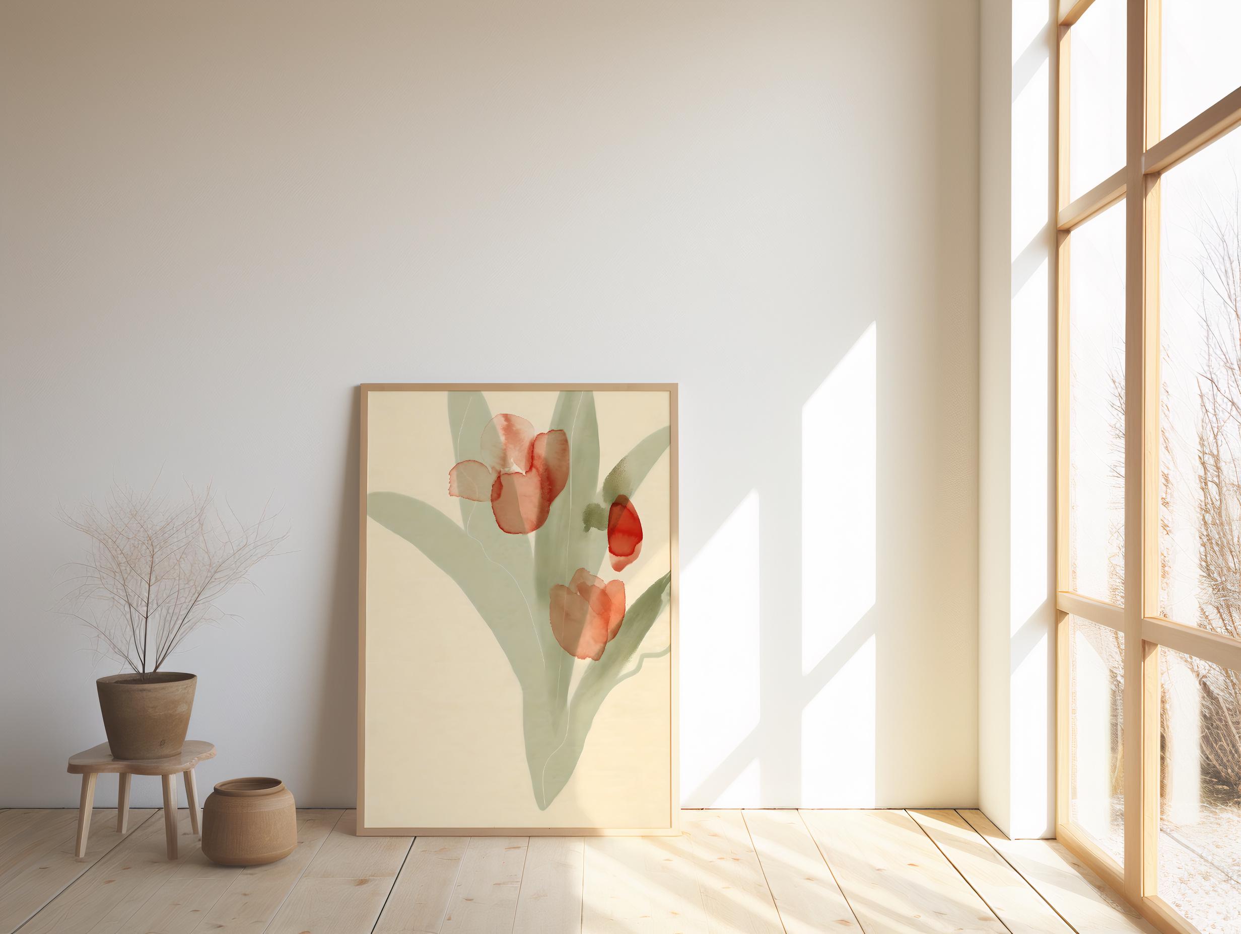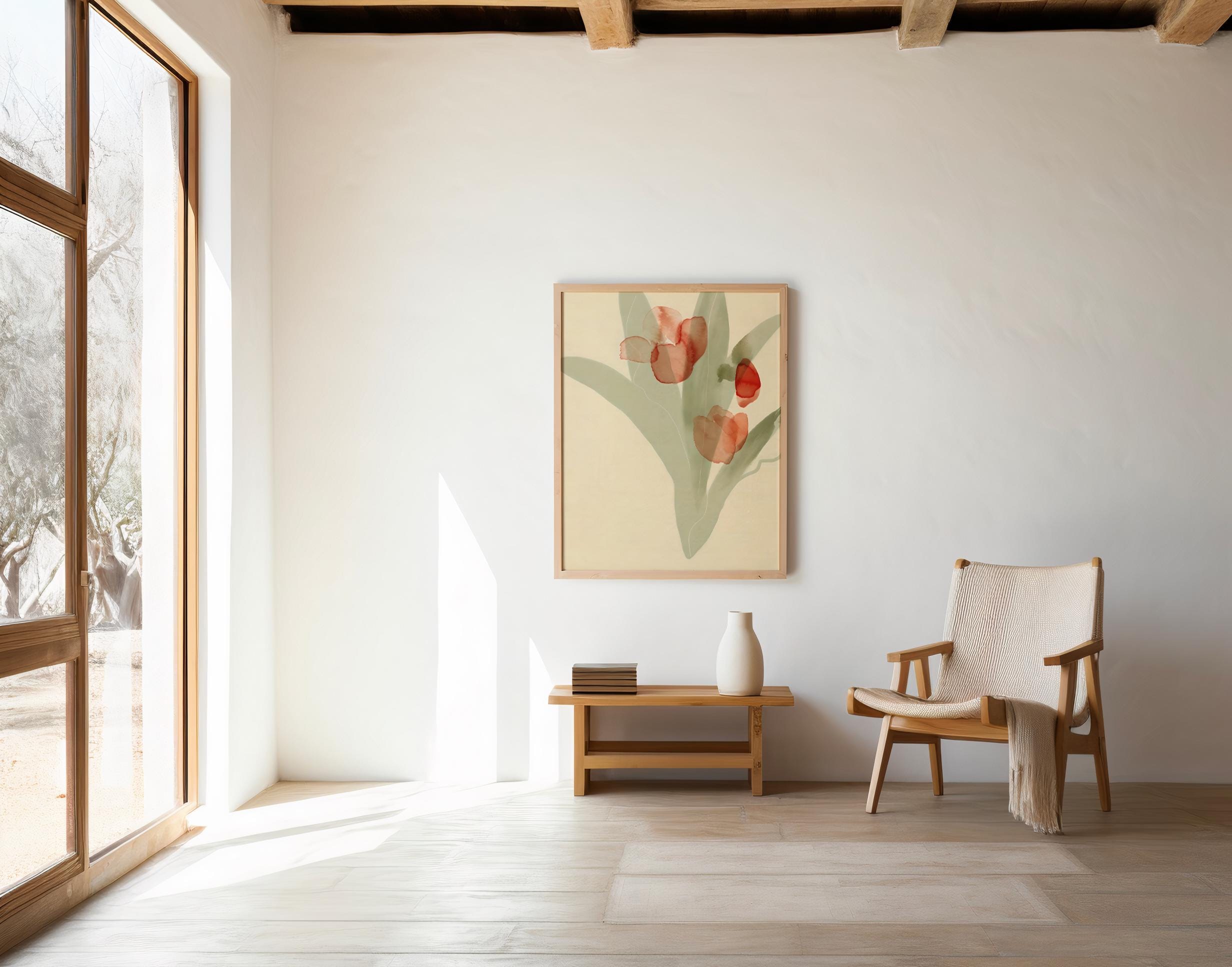 Red Watercolor Floral Wall Art – Minimalist Tulip Botanical – Digital Download
