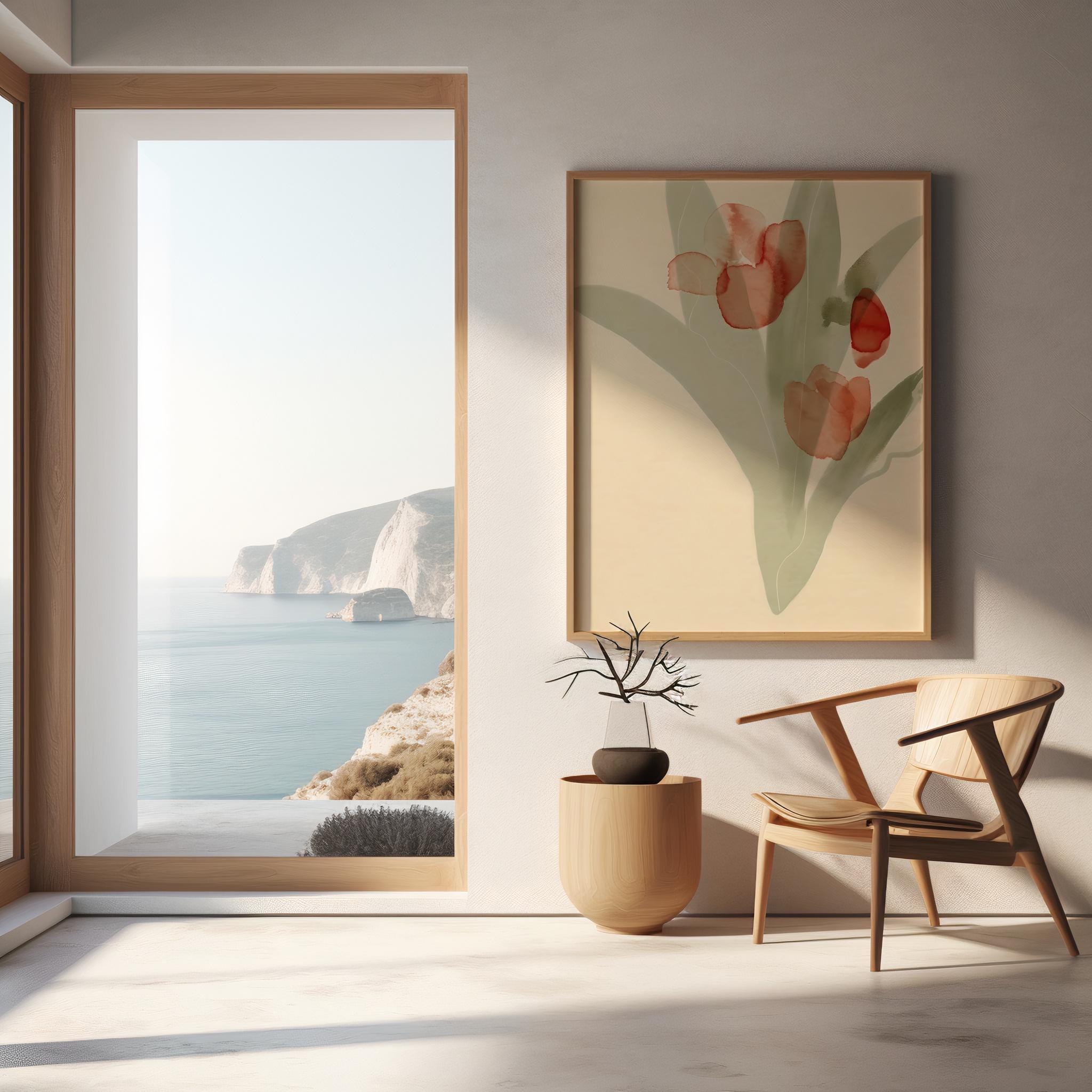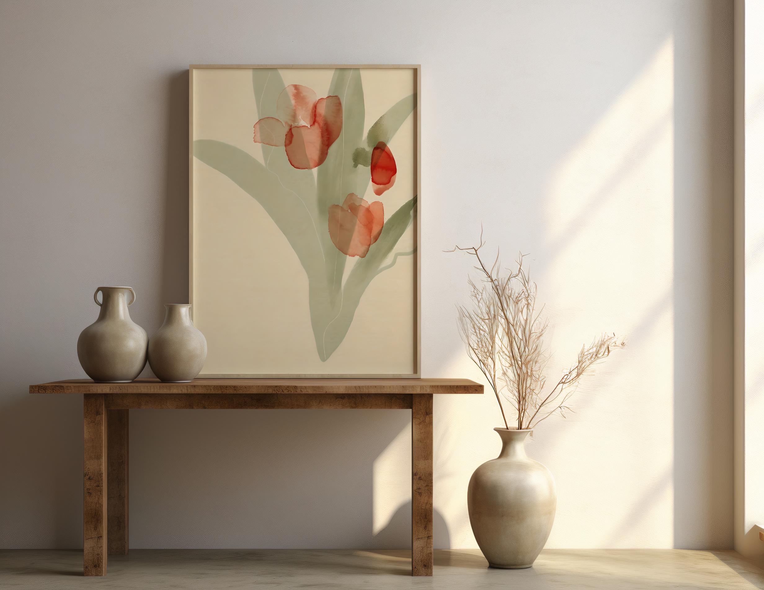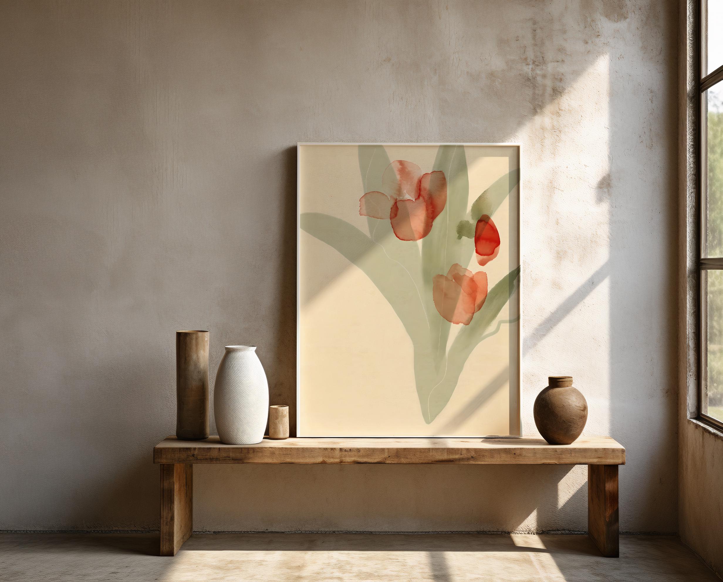 Red Watercolor Floral Wall Art – Minimalist Tulip Botanical – Digital Download