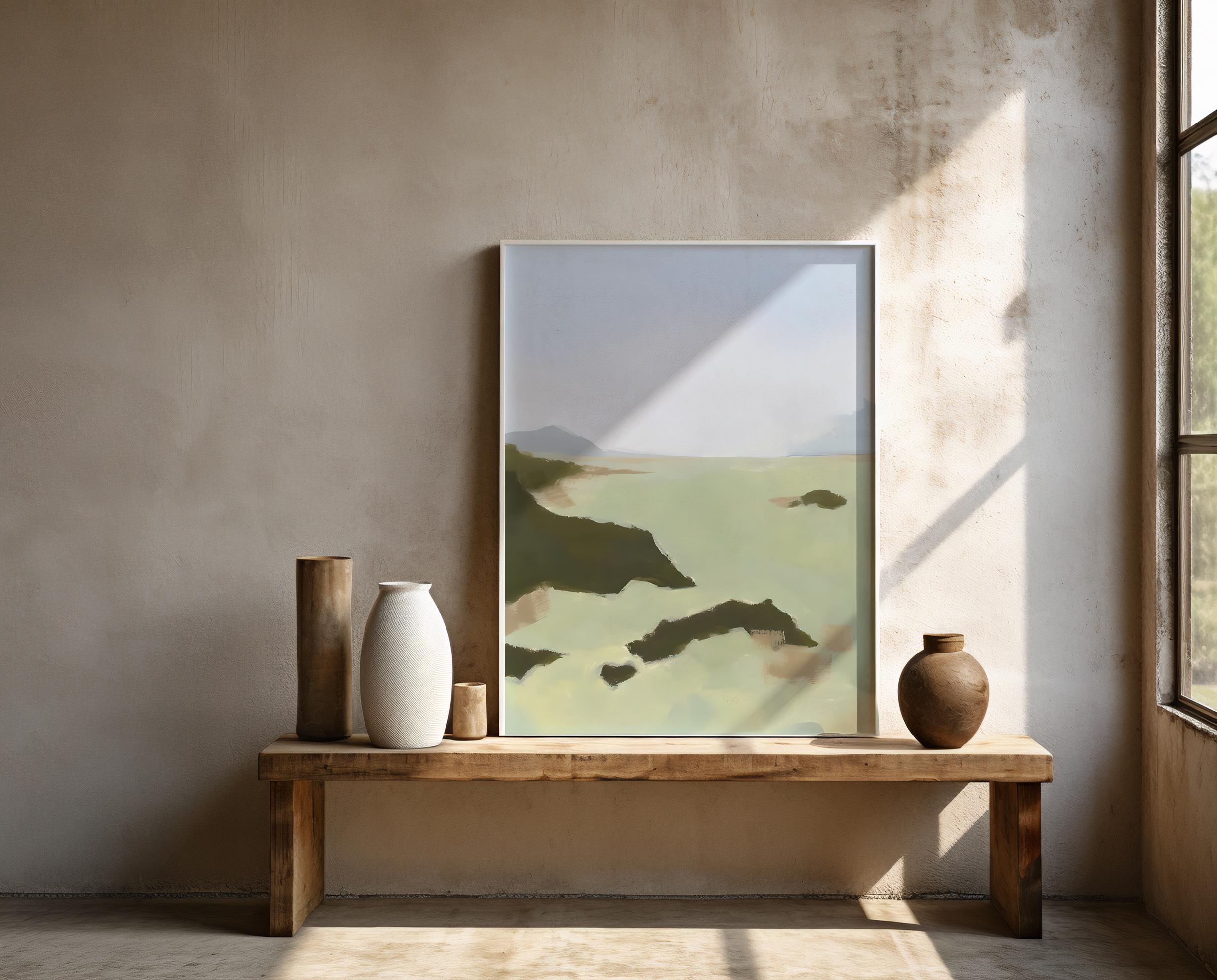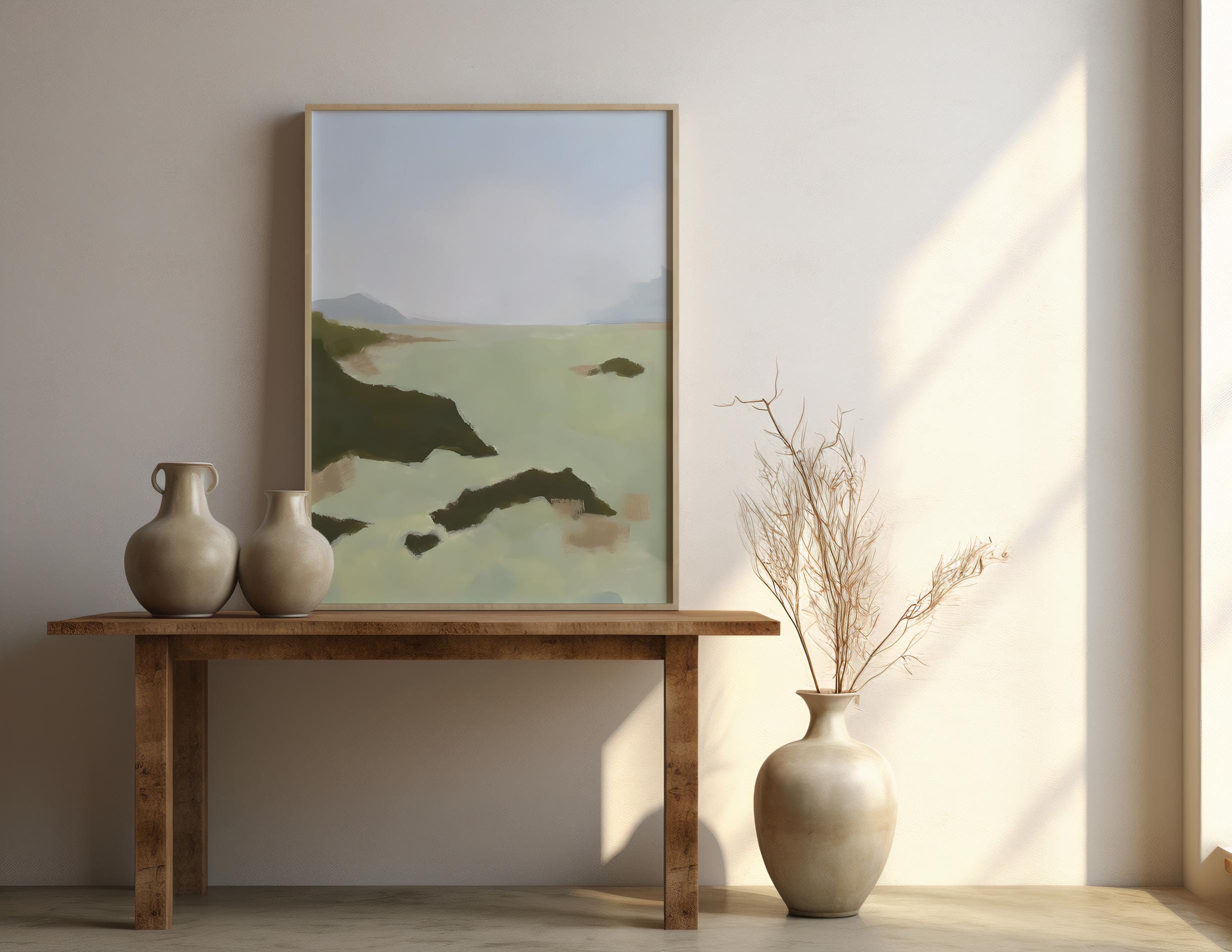 Coastal Landscape Print | Sage Green Misty Sea Wall Art (Digital Download)