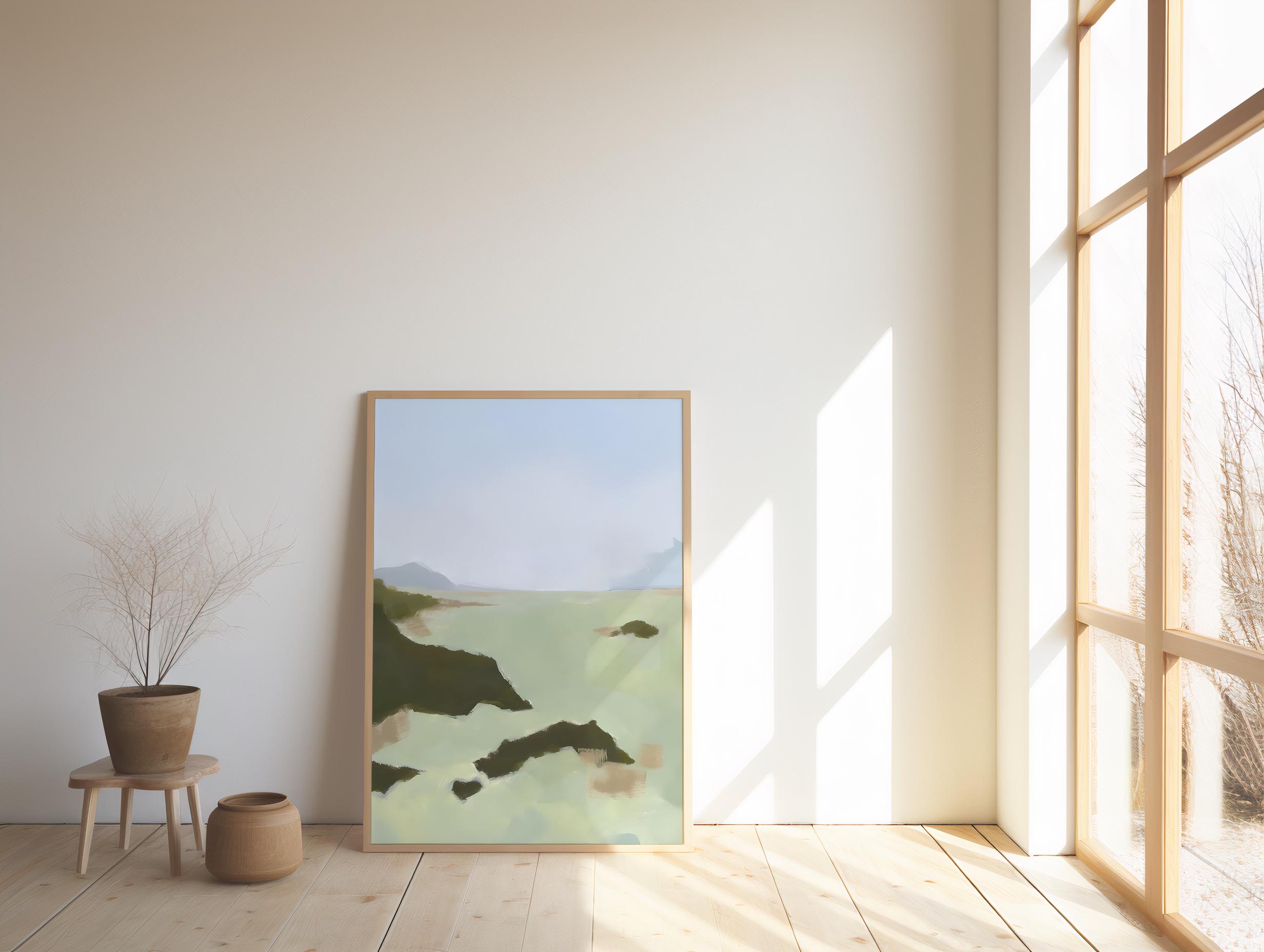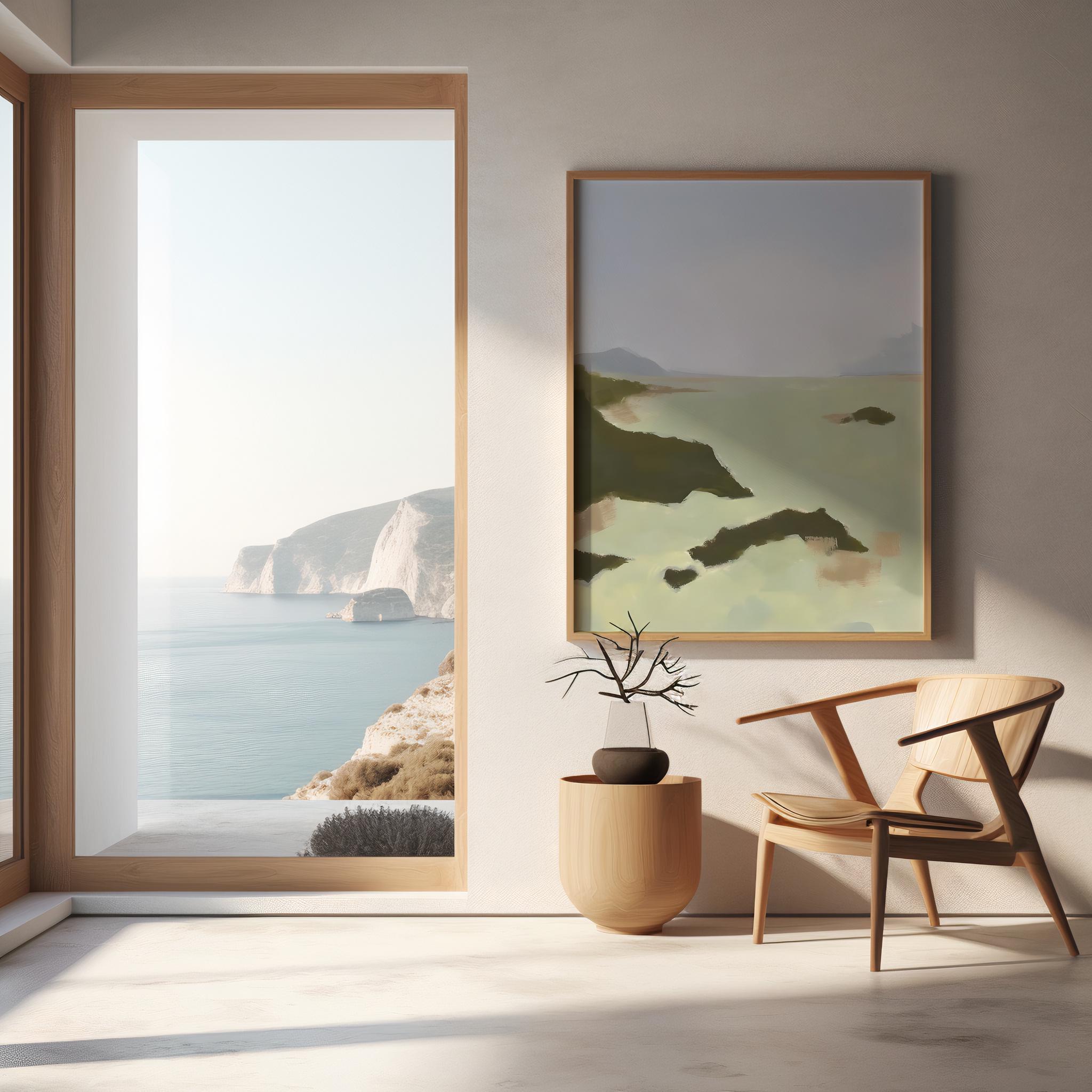 Coastal Landscape Print | Sage Green Misty Sea Wall Art (Fine Art Poster)